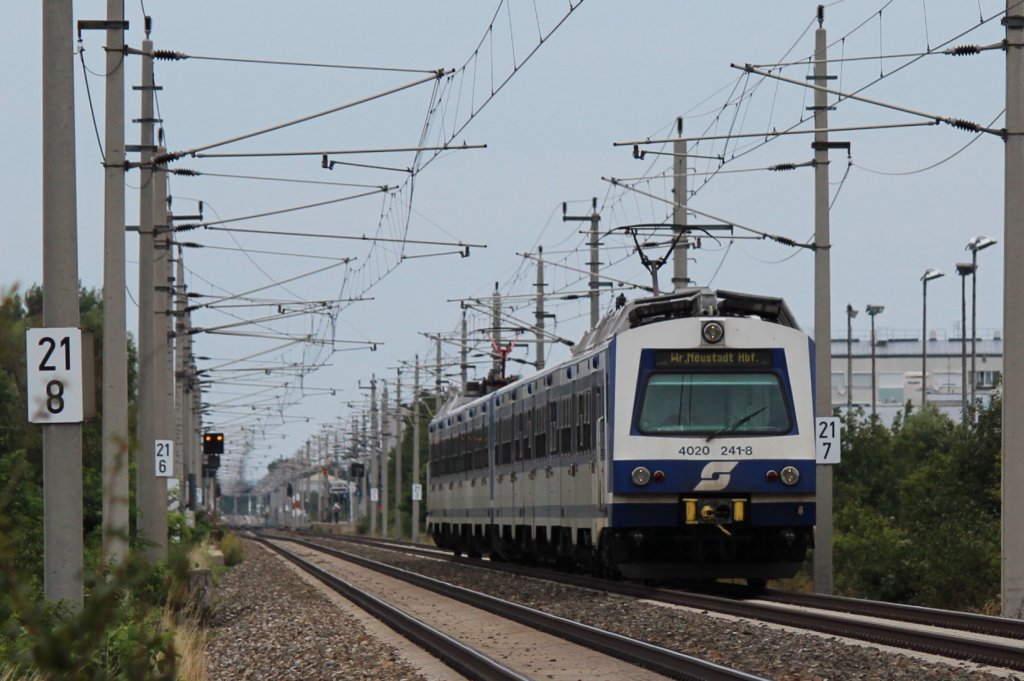 Die Typische Schnellbahnganitur 4020 in Doppeltraktion die Ganituren 41 und 43 auf der Fahrt als S9 29387 von Wien Floridsdorf nach Wiener Neustadt Hauptbahn, aufgenommen kurz nach der Haltestelle Gumpoldskirchen; am 30.07.2012 Florian Kubele