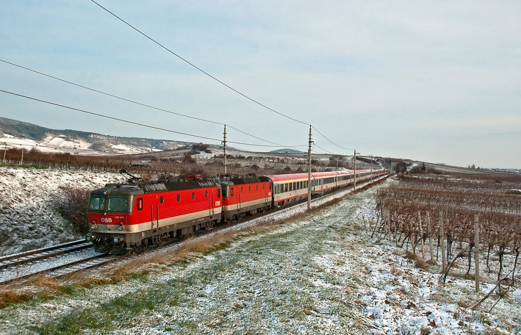 1144 240 an der Spitze des OEC 531 vom Wien Meidling nach Lienz. Die Aufnahme entstand am 27.11.2010 zwischen Gumpoldskirchen umd Pfaffstätten.