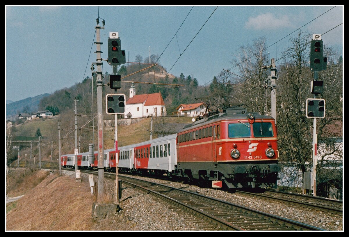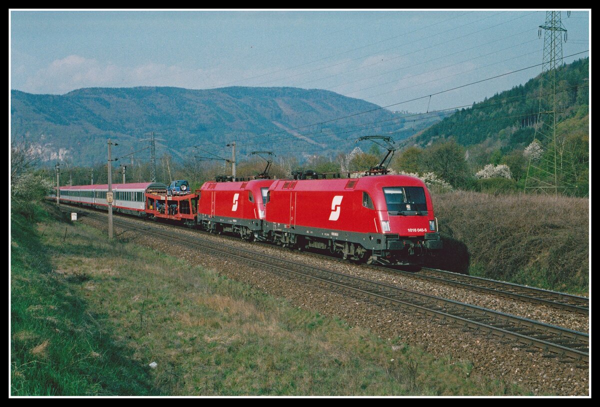2016 009 als Vorspann zu R4016 zwischen Pernegg und Bruck an der Mur am 13.06.2002. Grund der Vorspannleistung war Personaleinschulung der damals neuen Reihe 2016. Herbert Pfoser