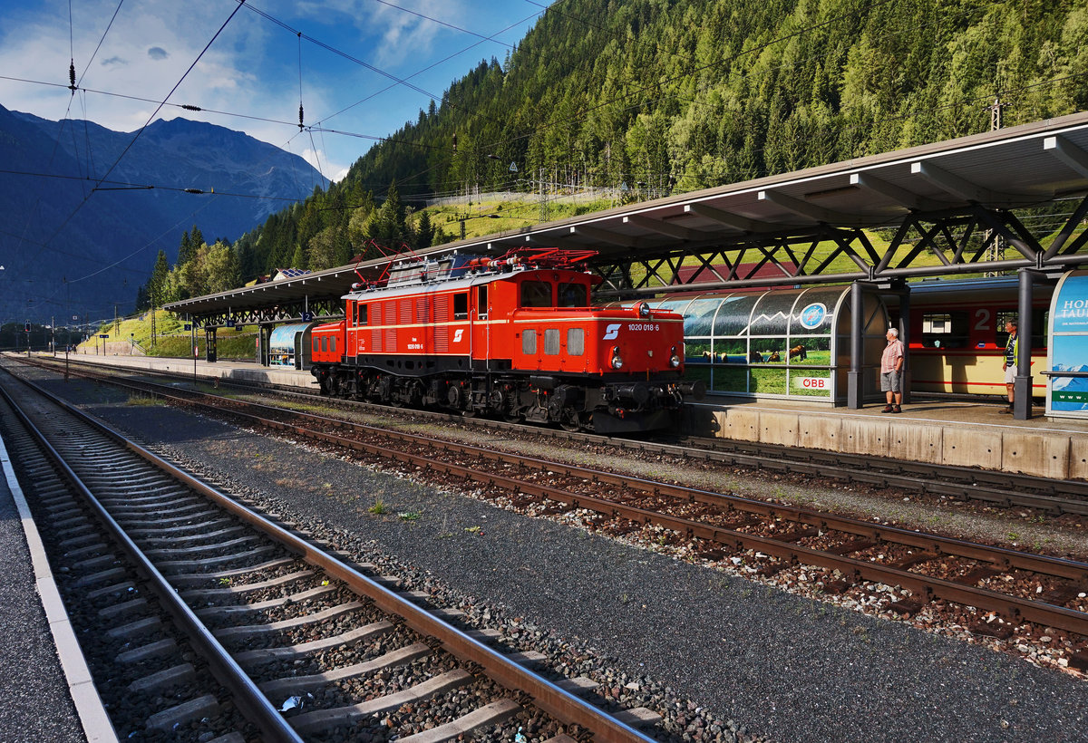 1020 018-6 unterwegs beim Stürzen, im Bahnhof Mallnitz-Obervellach. Etwas später ging es für sie dann mit dem SR 17077 nach Spittal-Millstättersee, wieder talwärts.