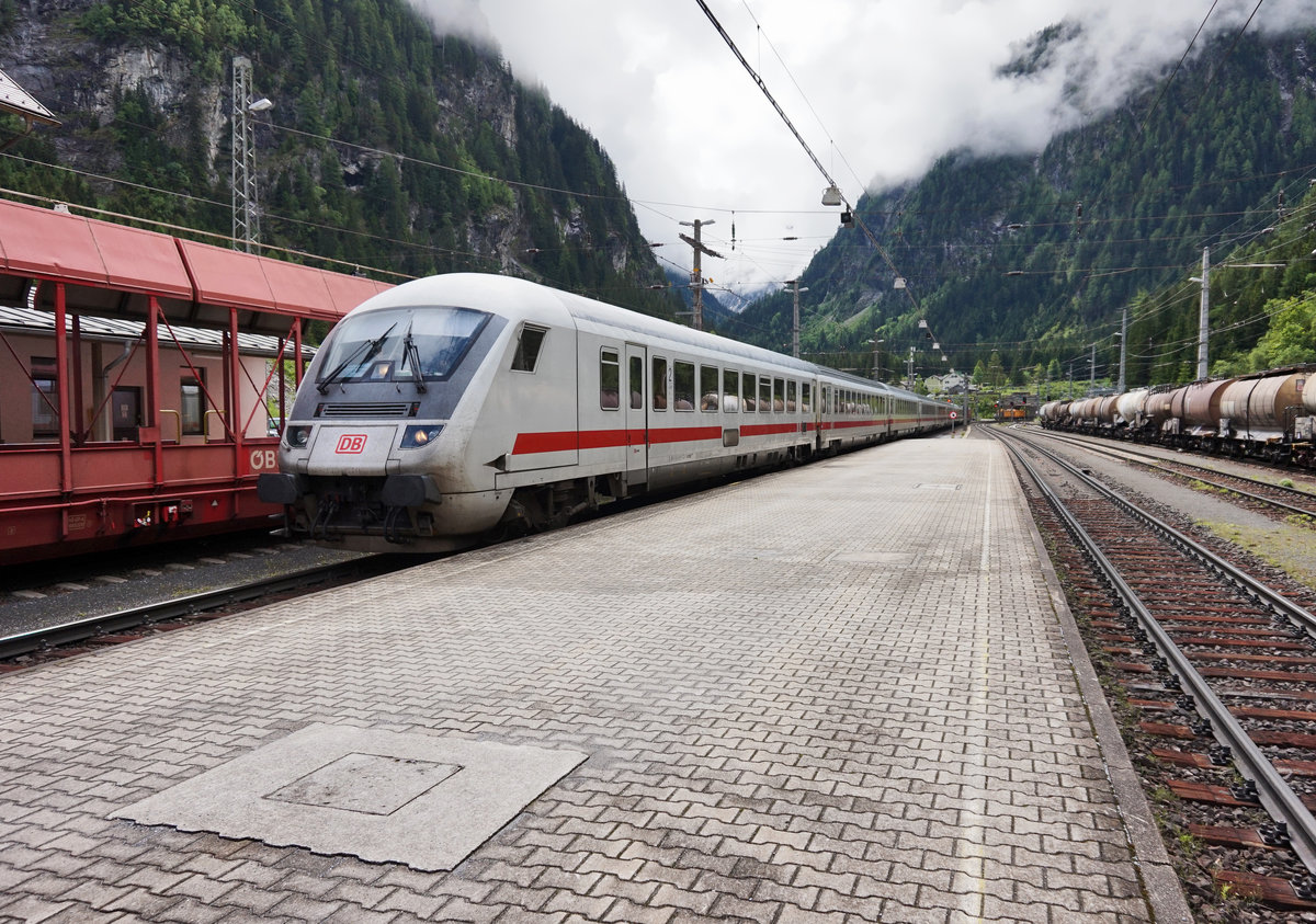 Mit dem Steuerwagen voraus, fährt der EC 114 "Wörthersee" (Klagenfurt Hbf - Dortmund Hbf), durch den Bahnhof Böckstein.