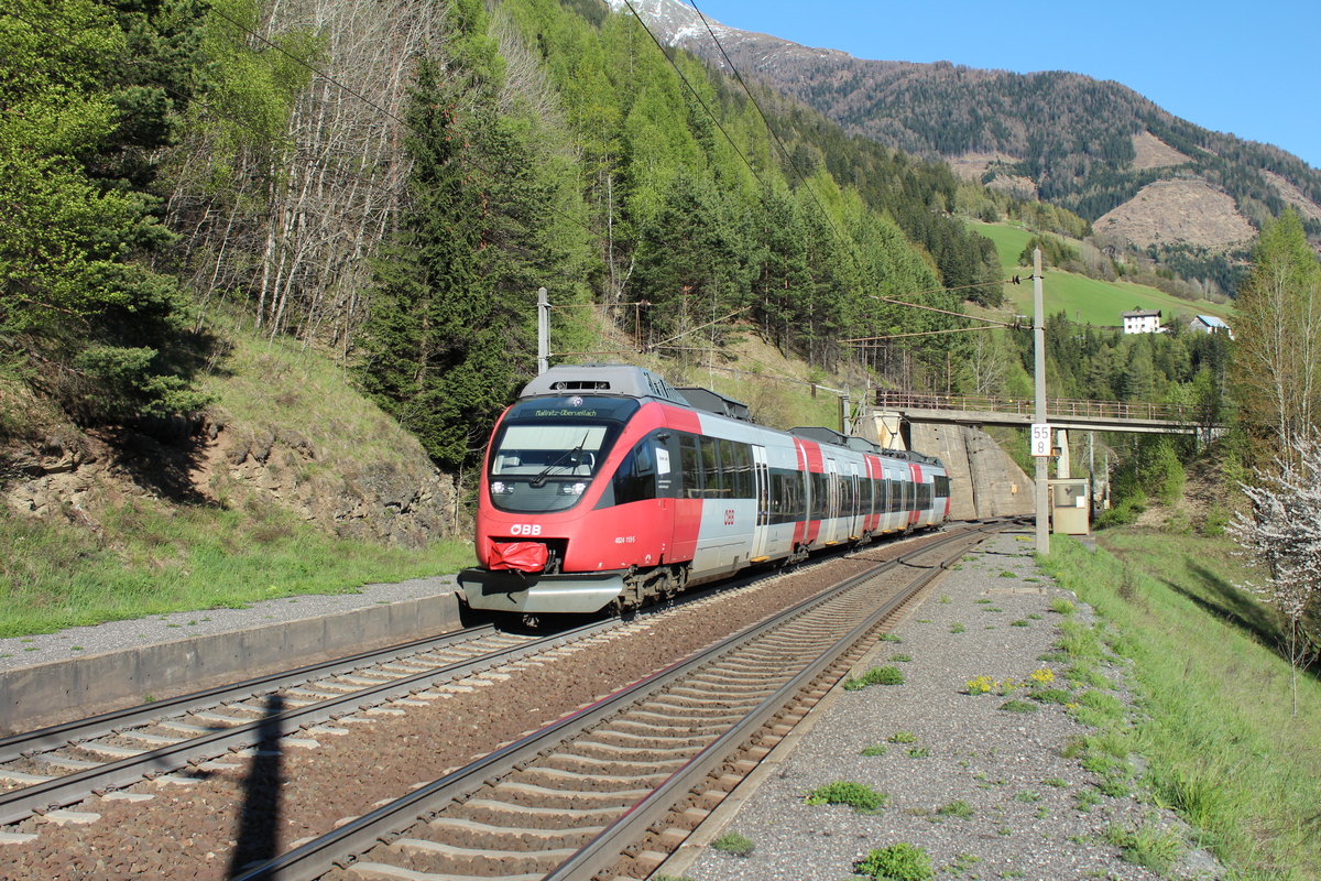 Als in Oberfalkenstein noch Regionalzüge hielten wartet der 4024 113 am 20.4.2016 als R4936 auf die Weiterfahrt nach Mallnitz-Obervellach.