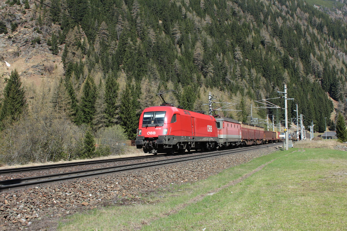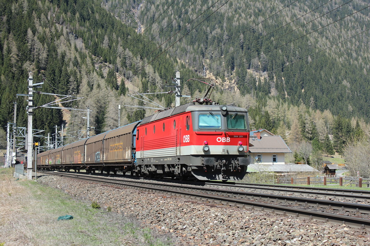 Am 20.4.2016 unterstützt die 1144 201 kräftig die 1144 091 und 1016 016 mit dem G45812 von Villach Süd Gvbf nach Freilassing hier kurz hinter Mallnitz-Obervellach.