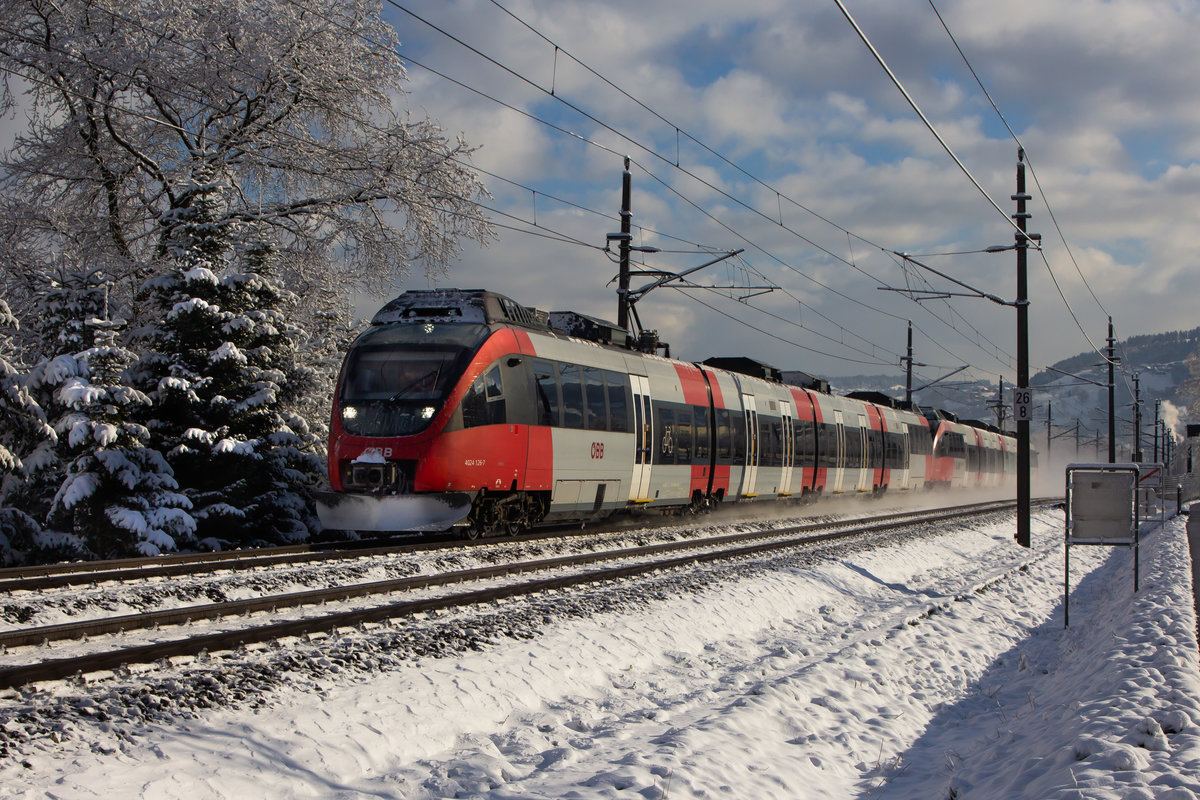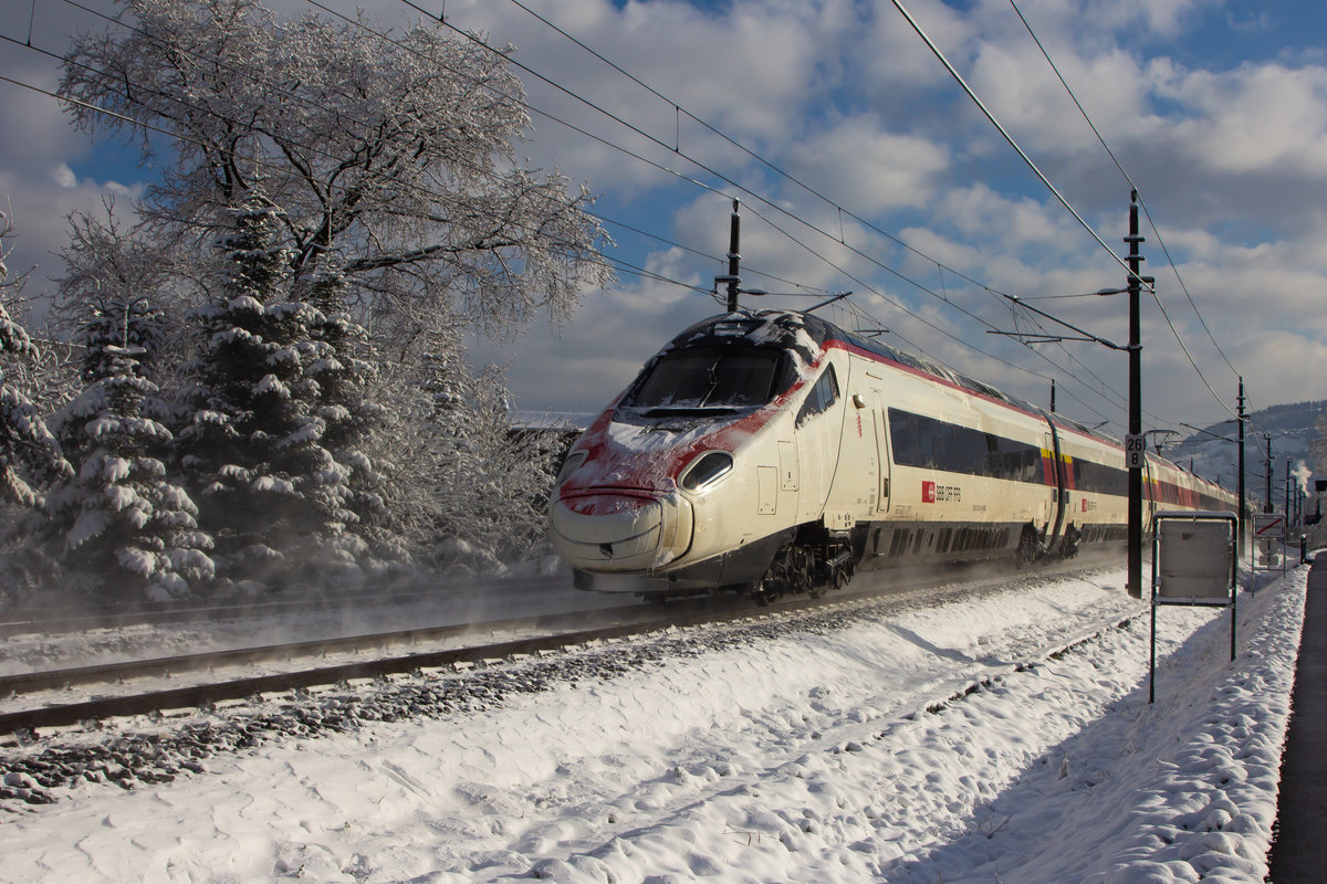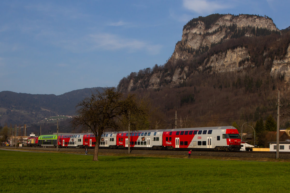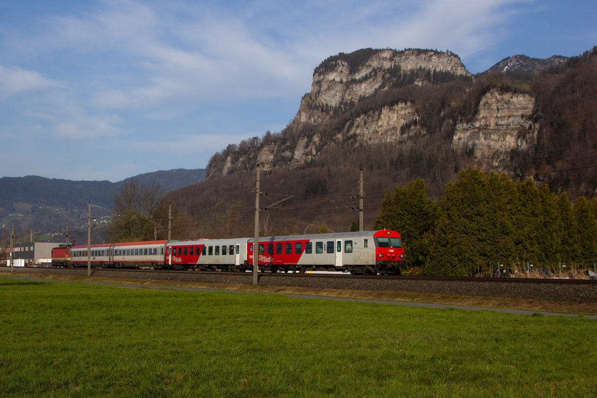 503 013 am ersten Tag der EuroCity Umleiter über Feldkirch/Dornbirn nach Bregenz aufgrund der Bauarbeiten zwischen St. Margrethen und Lauterach. Noch dazu gabs frischen Schnee und dazu perfekte Sonne zum richtigen Zeitpunkt. 6.4.21 Marvin Schenk