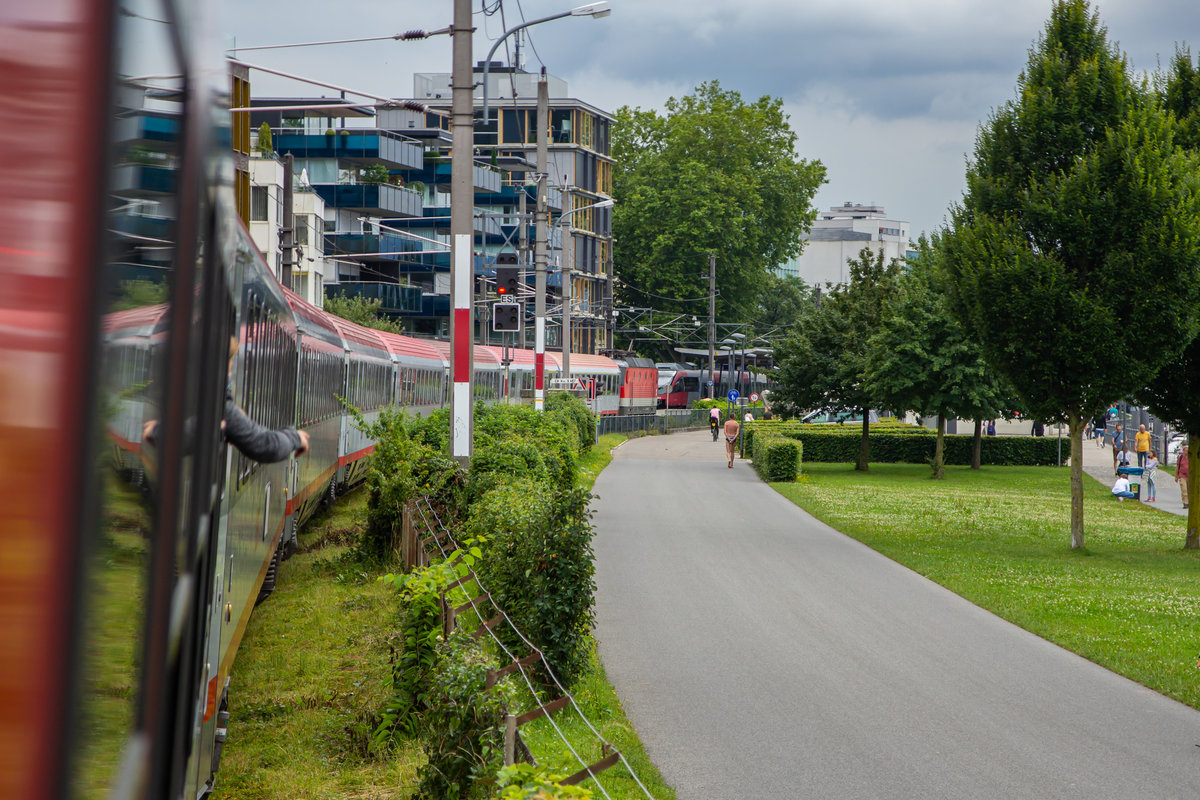 Entlang der Seepromenade in Bregenz ist es schwierig aufgrund der stark gewachsenen Böschung ordentlich nach vorne zu fotografieren.