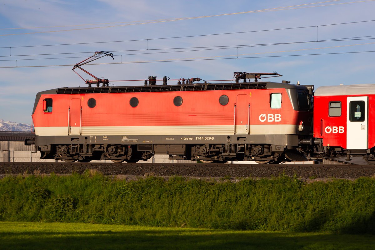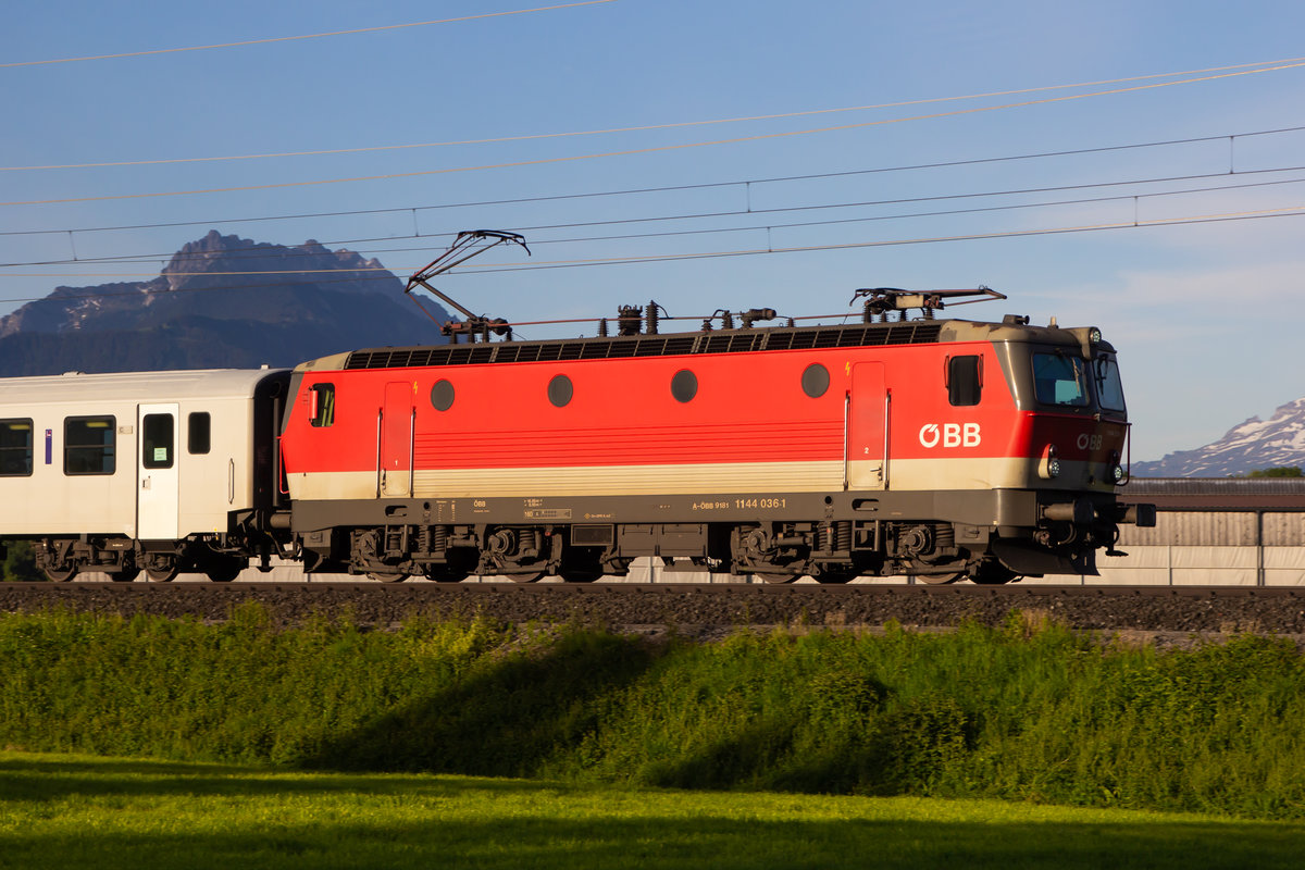 1144 036-1 mit der morgendlichen CityShuttle Garnitur bei Sulz Röthis. Bei Sulz Röthis, 22.5.20