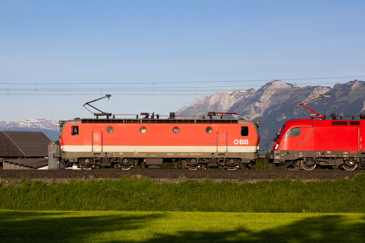 1144 041-1 führen vor zwei Taurussen bei Sulz Röthis. 22.5.20