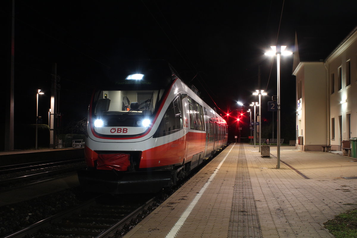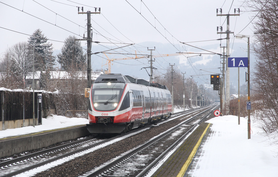 Als R6477 von Payerbach-Reichenau nach Semmering kommt der in cityjet Design lackierte 4023 011 am 27.11.2018 in seinem Zielbahnhof an.