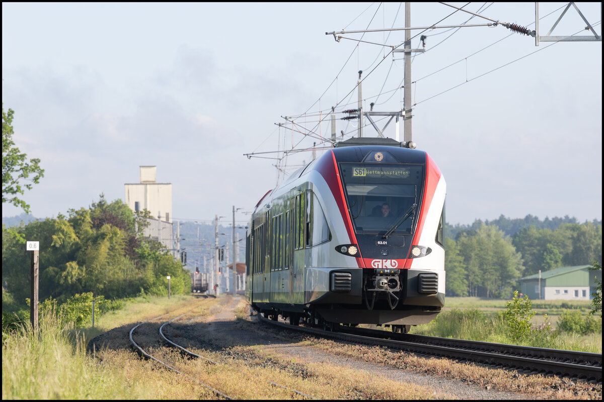 Ein VT63 erreicht am 6. Juni den Bahnhof Wettmanstätten als Zug der Linie S6. Ab dem Start des elektrischen Betriebes , spätestens mit Fahrplanwechsel werden die GTW auf dieser Linie von E- TFZ abgelöst. Karl Heinz Ferk