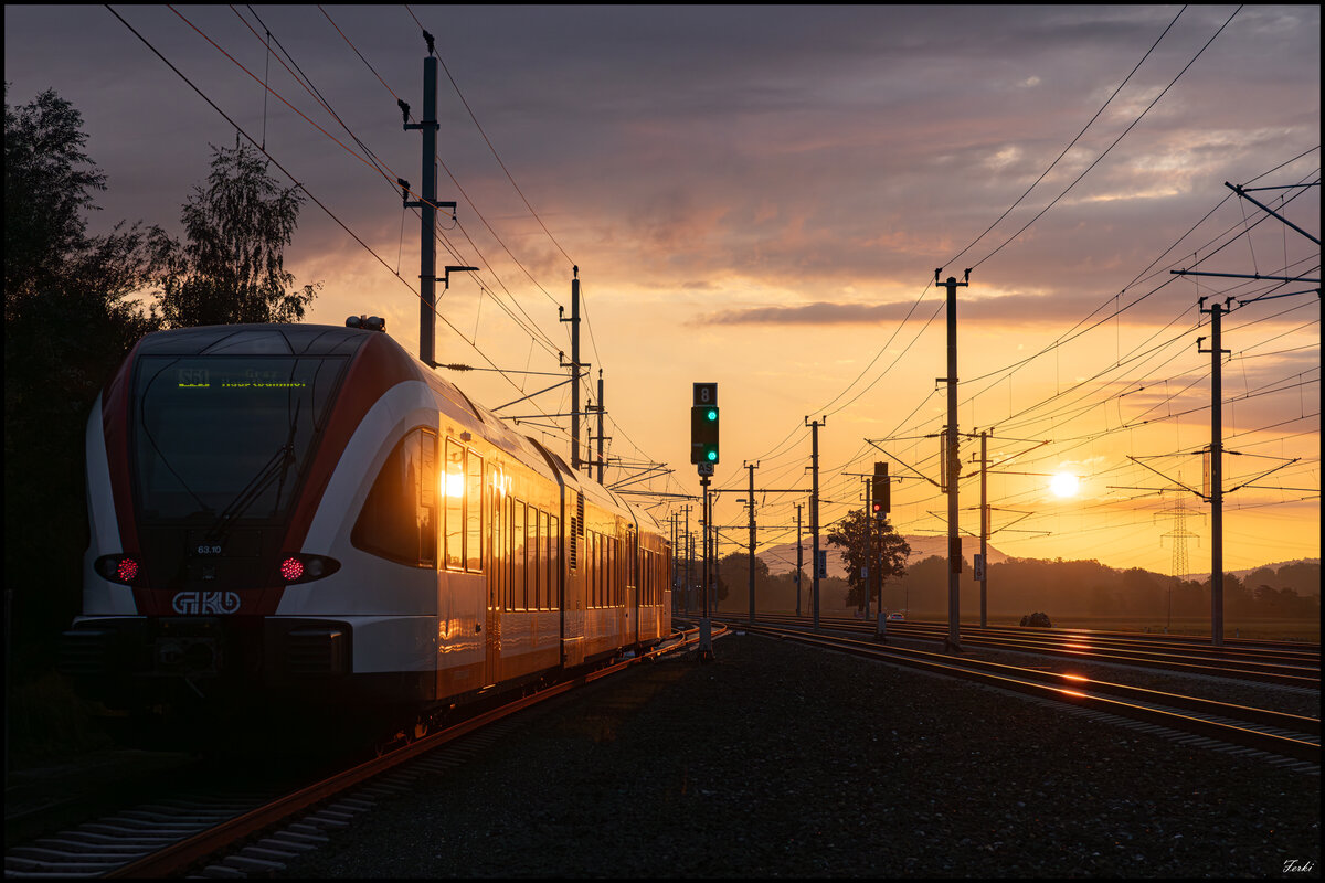 Deutschlandsberg. Im Stadtbahnhof Deutschlandsberg weht in kürze ein ganz anderer Wind: Wie am Bild zu erkennen ist, sind alle arbeiten zur Elektrifizierung der Strecke Graz - Wies abgeschlossen, der elektrische Betrieb mit Vectron bespannten ex. DB-Dosto samt ETCS startet Anfang August 2025. Bis dahin brausen die von Stadler gebauten GTW noch durch die Weststeiermark. Armin Ademovic