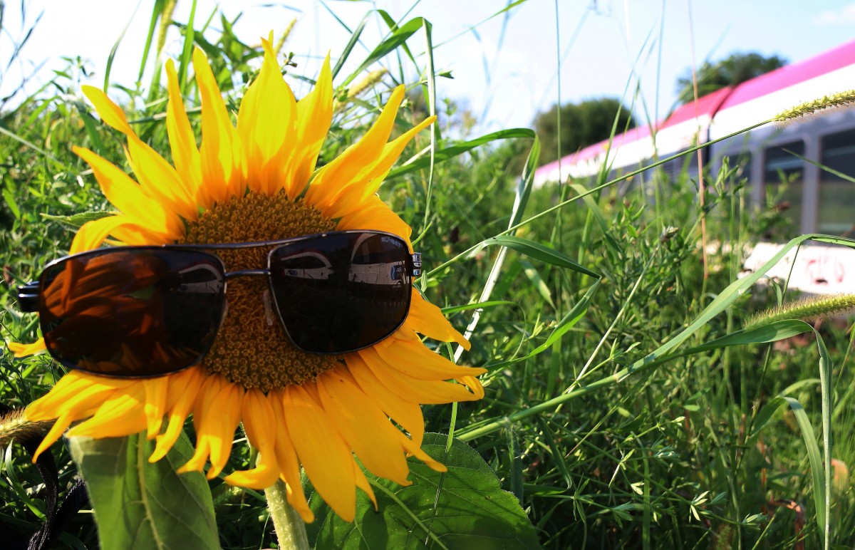 Mrs. cool,....... Eine Einsame Sonnenblume neben den Gleisen der Graz Köflacher Eisenbahn. 2 Triebzuege der Reihe 5063 bei Hohlbach 10.August 2015 Karl Heinz Ferk