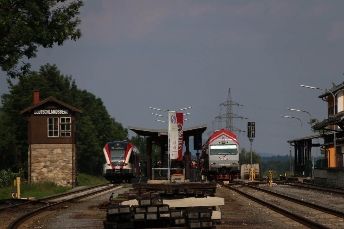 Der erste Bahnhof der Koralmbahn ist zugleich Drehscheibe für die Graz Köflacher Eisenbahn und den Betriebenen Linien S6und S61. Hier im Bild Zugbegegnung am 9.07.2015 Karl Heinz Ferk