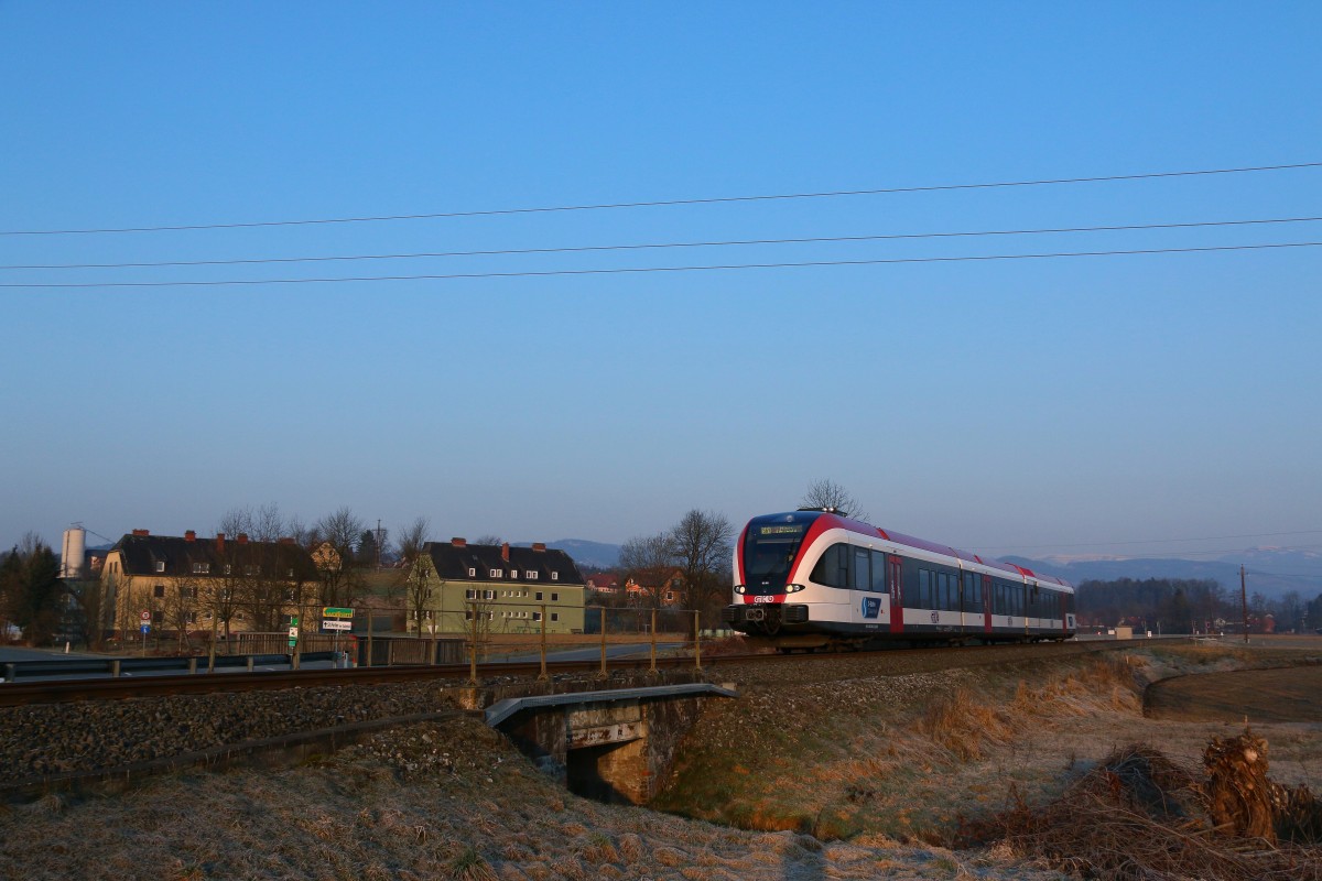 Ich kann´s einfach nicht lassen früh Morgens die Knipskiste auszupacken. So auch am 17.April 2015 . Kurz nach Groß Sankt Florian bewegt sich ein GTW2/8 in Richtung Wies Eibiswald Karl Heinz Ferk