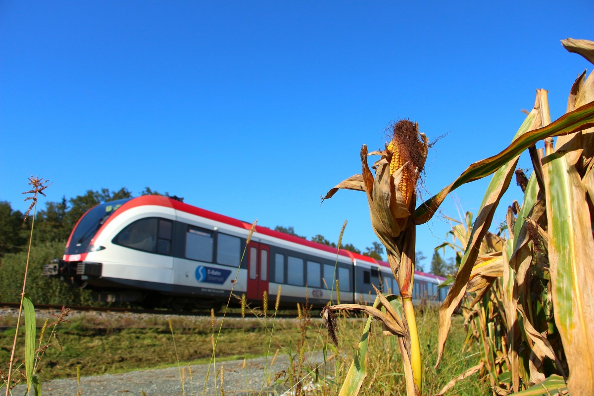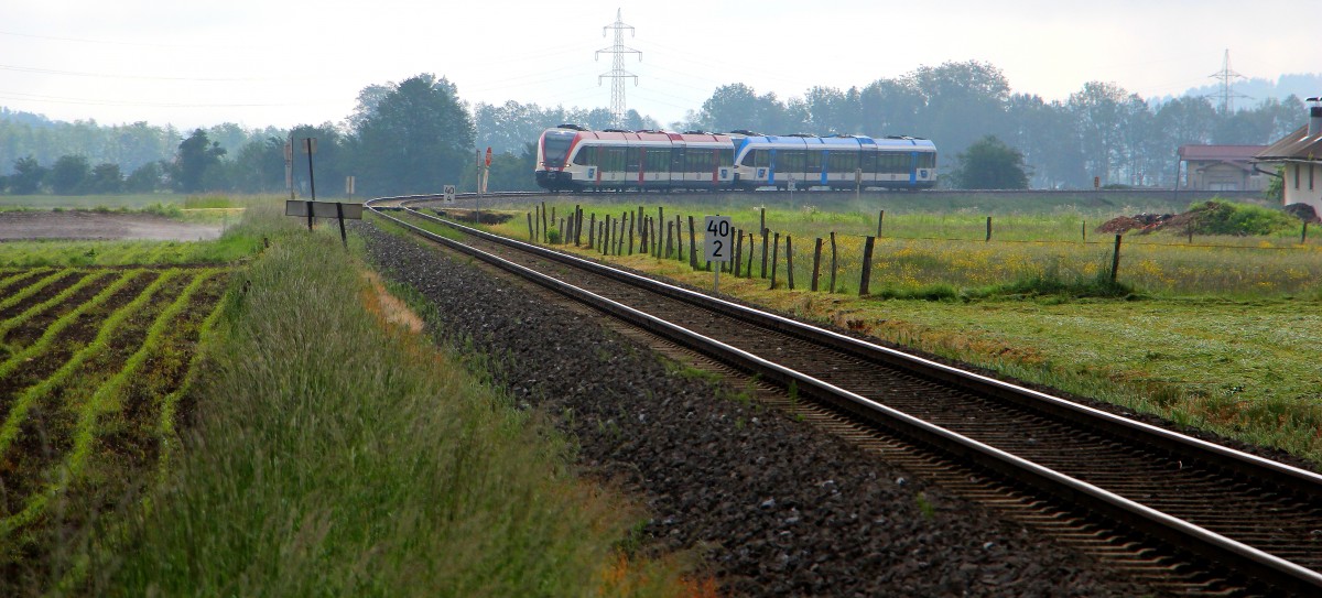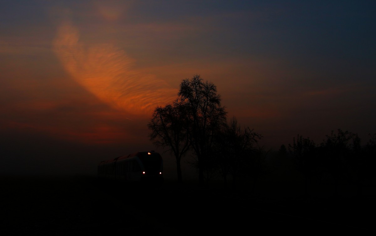 Wie der Flügel eines Engels wacht das Wolkengebilde über den vorbeirauschenden GTW2/8 der Graz Köflacher Eisenbahn. 5063.005 als R8586 am Allerheiligen Morgen.