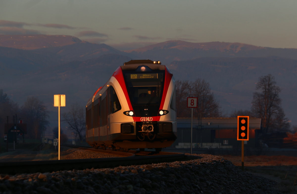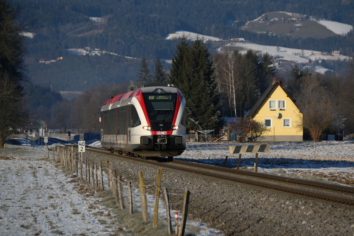 Die Fahrgastfrequenz in der Haltestelle Hollenegg ist doch etwas geringer als an den anderen Haltestellen der Graz Köflacher Eisenbahn. Am 14.01.2017 verirrte sich dennoch ein Fahrgast dahin. Karl Heinz Ferk