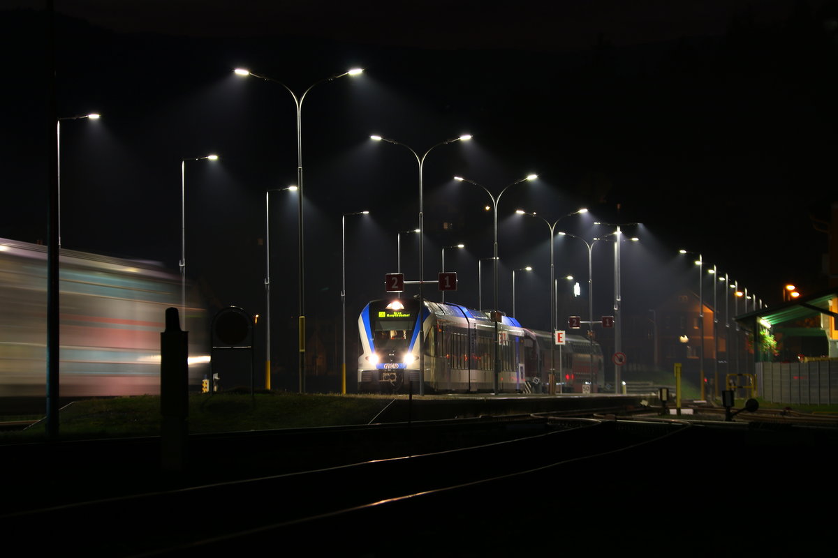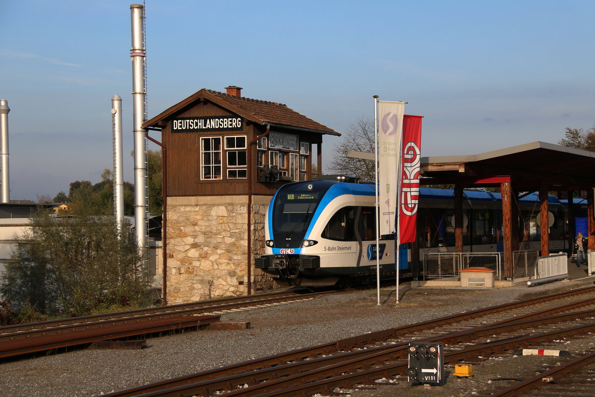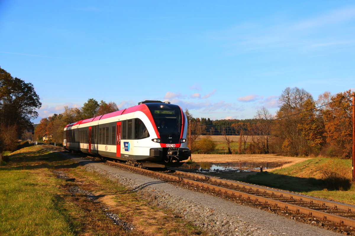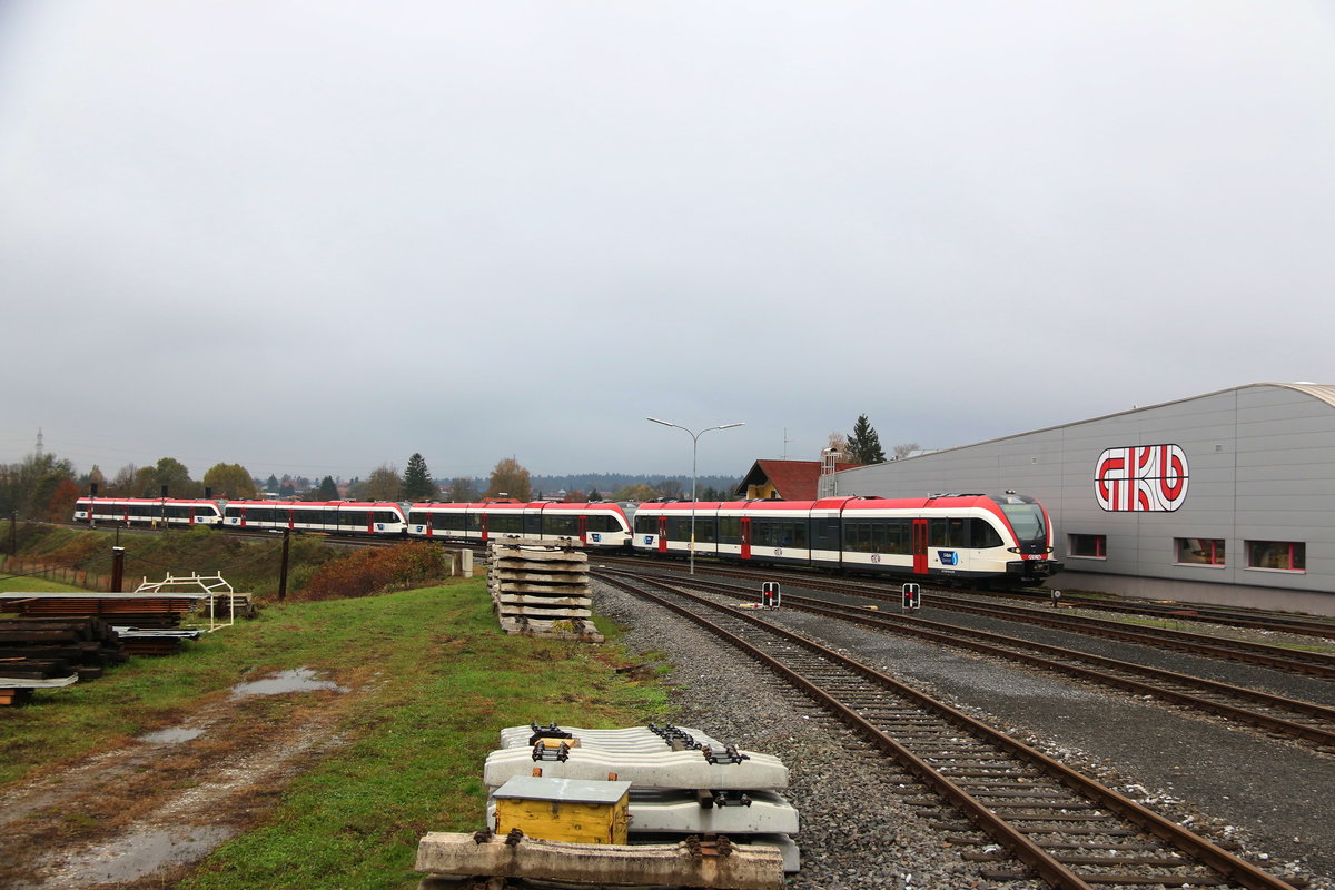 In Regelmäßigen Intervallen werden die GTW 2/8 der Graz Köflacher Eisenbahn gedreht um die Abnützung der Spurkränze und Laufflächen auszugleichen. Am 26.10.2016 nutzte man den lockeren Sonntagsfahrplan um mit wieder 4 der Triebzüge auf die "Ostschleife" des Bahnhofes Wettmanstätten zu befahren.
