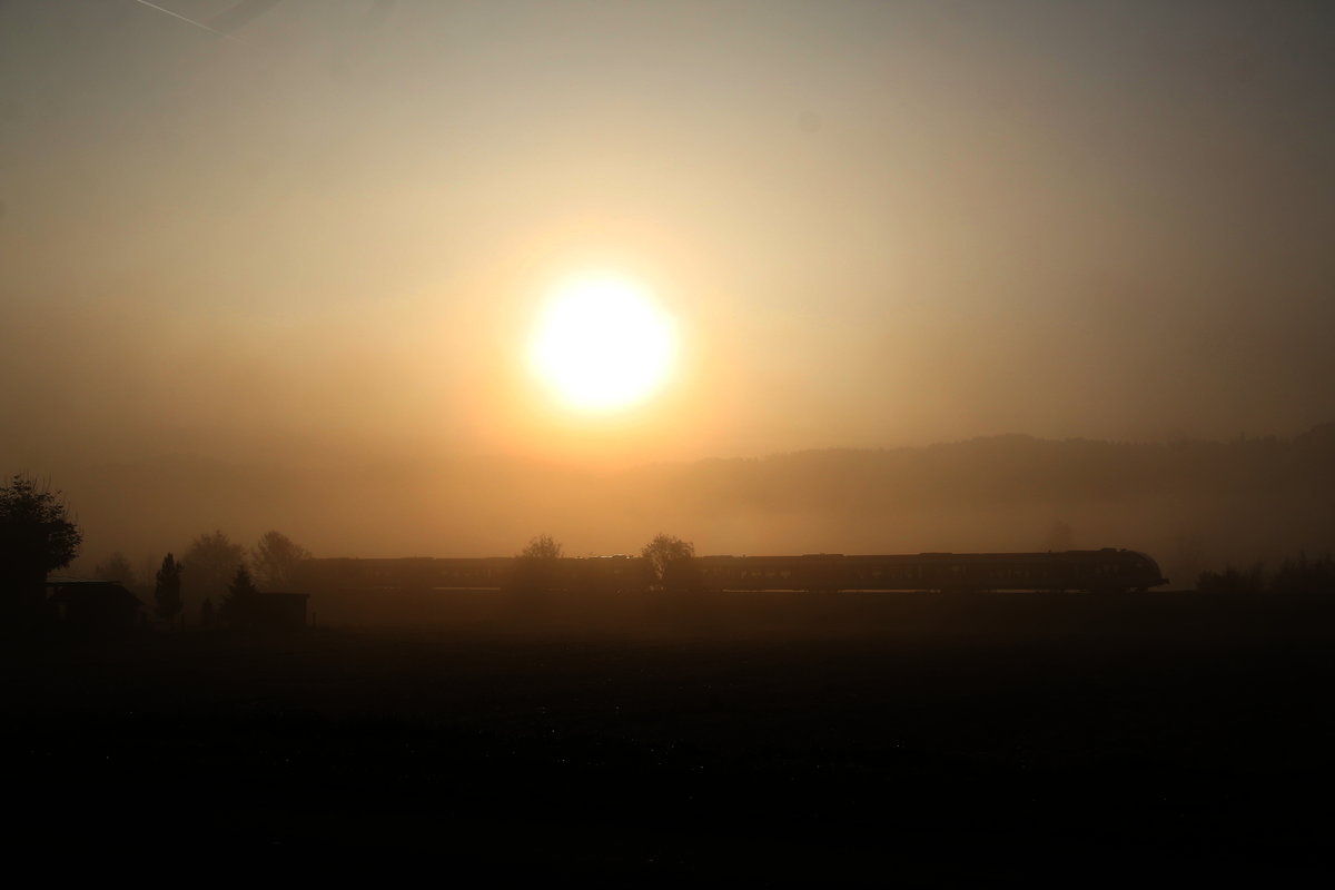 Ich hab mich heute Morgen doch etwas geärgert ,.. kurz vor sieben hat mir der Himmel wahrlich das Blaue versprochen ,.. der Dichte Nebel der kurz darauf einzog hielt sich allerdings dann hartnäckig bis in den Vormittag hinein. Hier im Bild R8558 bei Pölfing Brunn Karl Heinz Ferk
