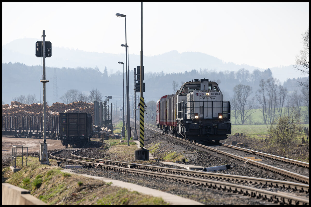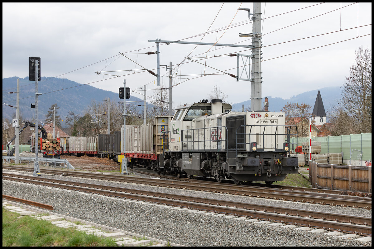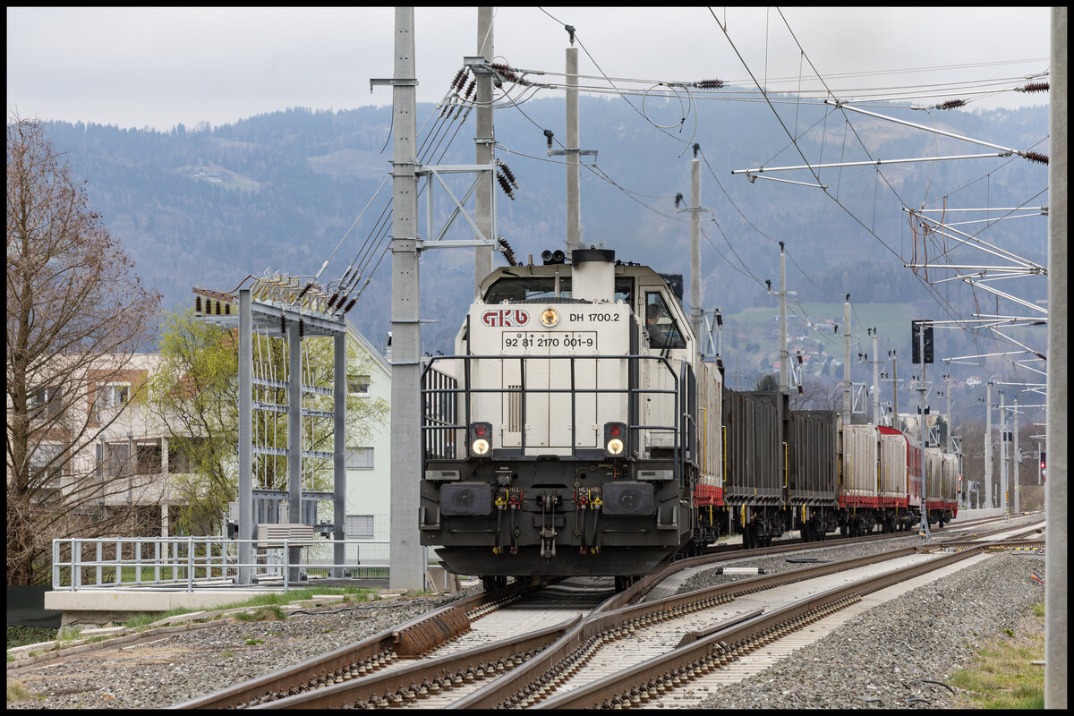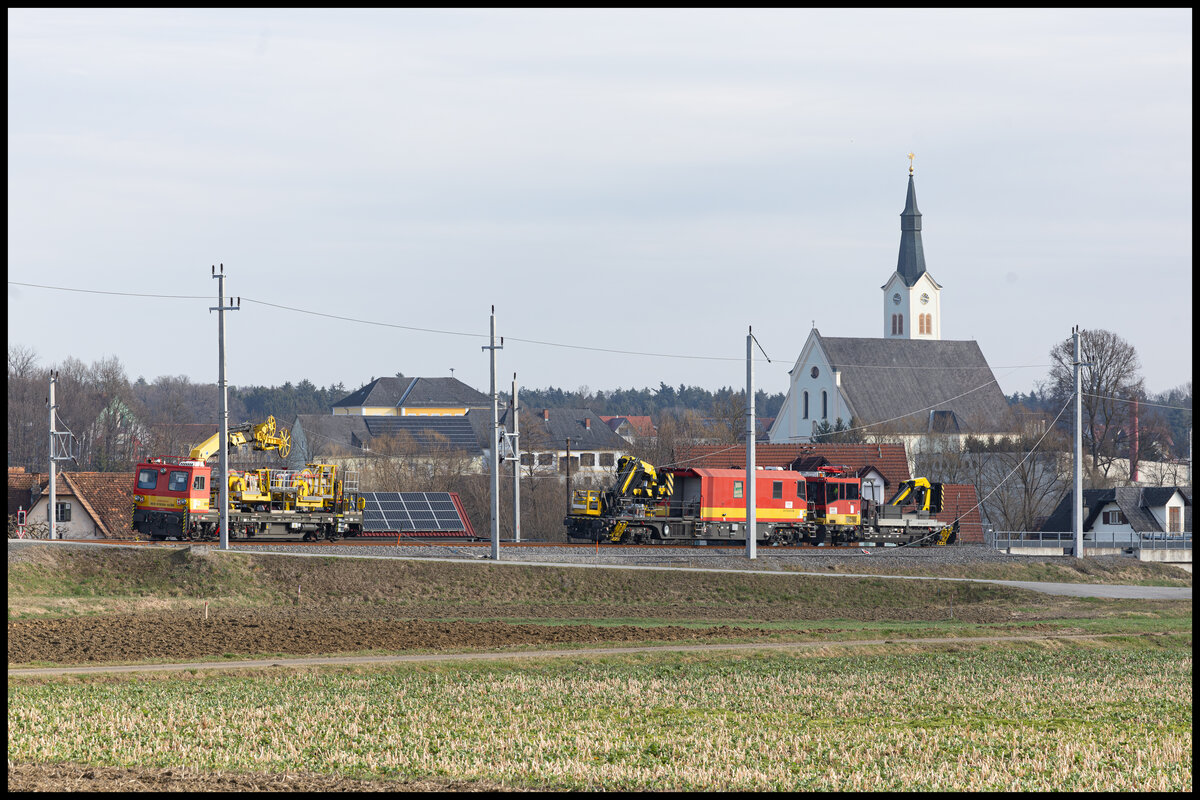 Die Elektrifizierung der Anschlussschleifen der GKB zum Bahnhof Weststeiermark sind im Vollen Gange . Hier im März 2024 wartet ein Fahrzeugverband auf den Dienstbeginn in Gr0ß Sankt Florian . Karl Heinz Ferk