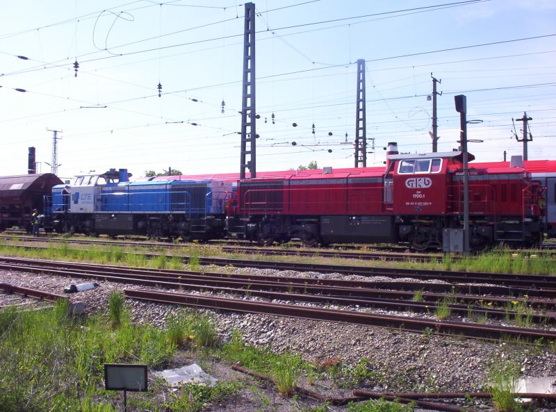Zur allerersten Begegnung der beiden Schwesternmaschinen G 1700 kam es am 9.5.2004. GKB 1700.1 trifft in Wien Hütteldorf auf LTE 2170.001 Hanspeter Reschinger