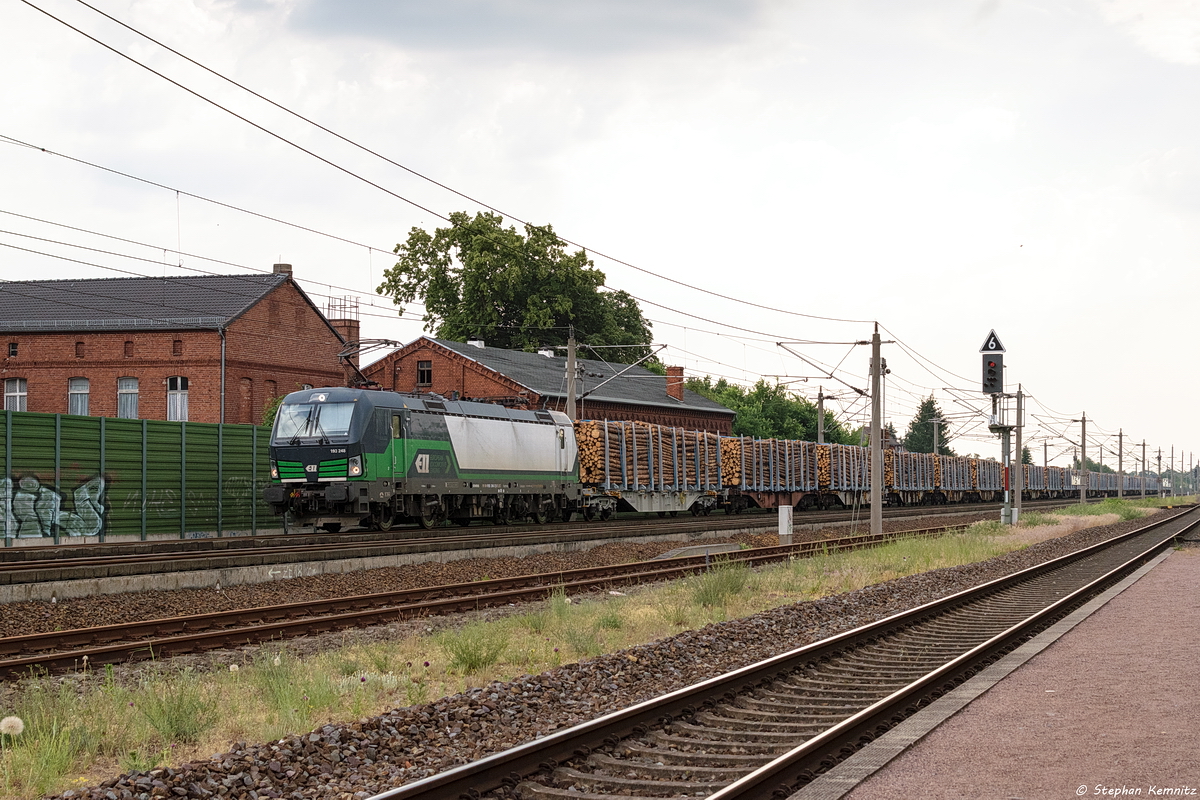 193 248-2 ELL - European Locomotive Leasung für SETG - Salzburger Eisenbahn TransportLogistik GmbH mit einem Holzzug in Großwudicke und fuhr weiter in Richtung Stendal. 01.06.2018 Stephan Kemnitz