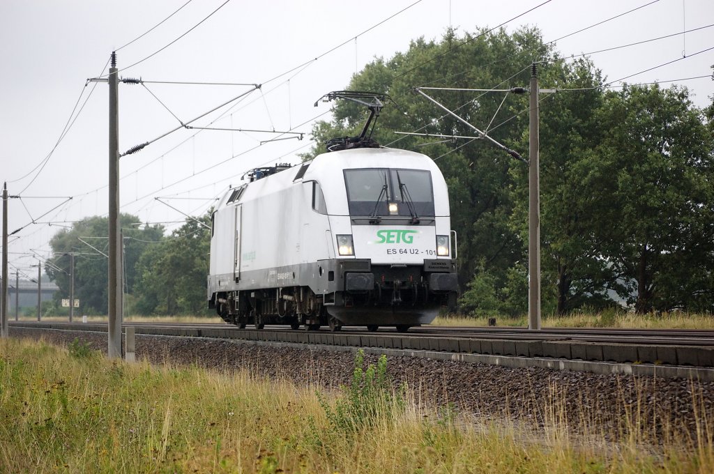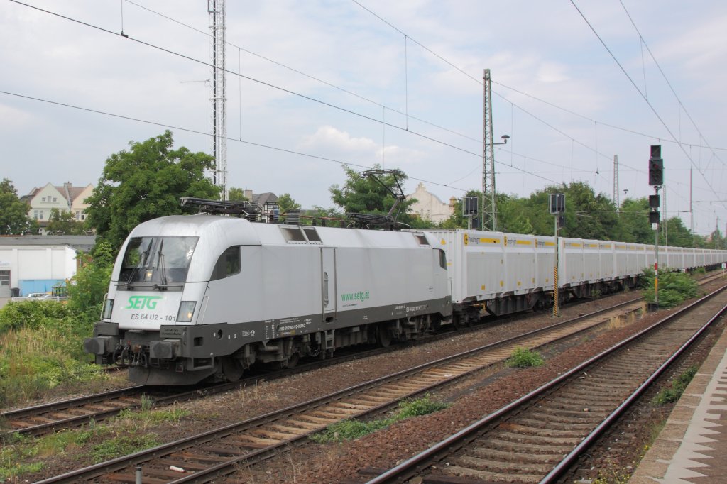 SETG ES 64 U2-101 mit reichlich Holz Richtung Biesdorfer Kreuz (NVR-Nummer 9280 6182 601-5 D-HUPAC, ex PRESS, ex Crossrail, ex DLC, ex CTL, Eigentum HUPAC, gesehen Berlin Wuhlheide 10.09.2010) Frank Paukstat