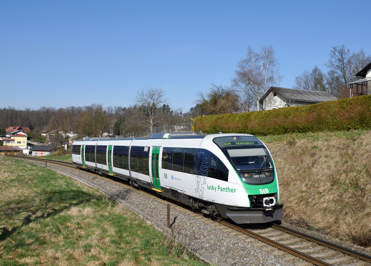 Am 14. Jänner 2024 wurder der Talent 643 113 in Weiz auf den Namen lucky Panther getauft, heute war er auf der steirischen Ostbahn als S 31 von Graz Hautptbahnhof nach Gleisdorf im Einsatz, und wurde dabei von mir in Hart bei Graz fotografisch festgehalten. Mögen ihm viele glückliche Momente in seiner neuen Heimat vergönnt sein.