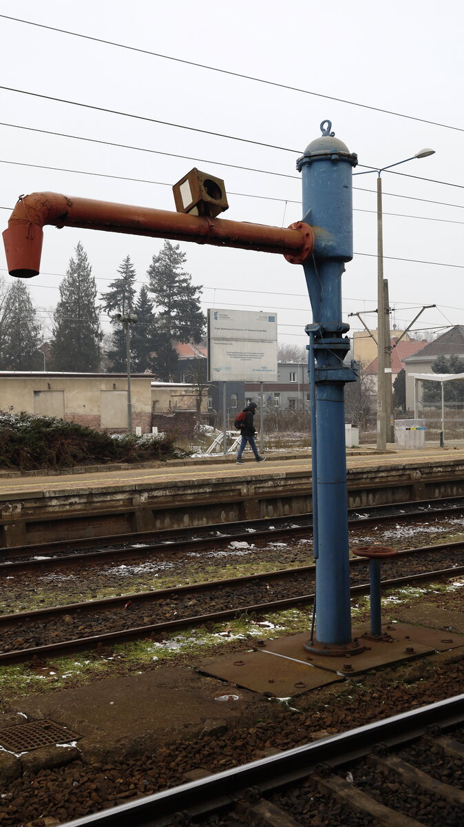 Ein Wasserkran in Zbąszyń (deutsch Bentschen), hier konnt der Fotograf aus dem SEV wieder in den IC Poznan umsteigen. 16.12.2022 14:46 Uhr. Siegfried Heße