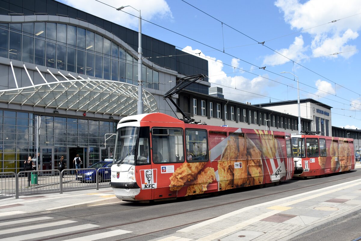 SZCZECIN (Woiwodschaft Westpommern), 09.07.2025, Straßenbahnzug 790 als Linie 6 nach Pomorzany bei der Einfahrt in die Haltestelle Szczecin Główny Reinhard Zabel