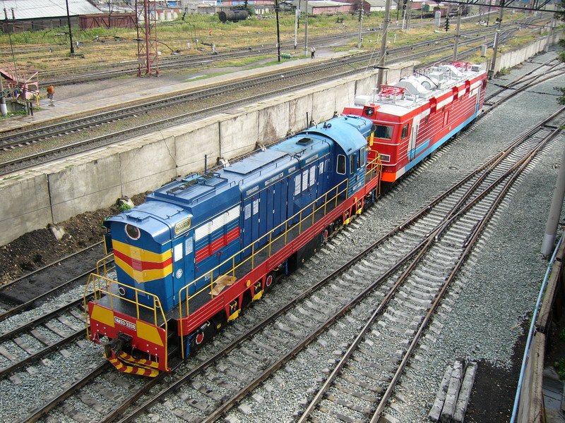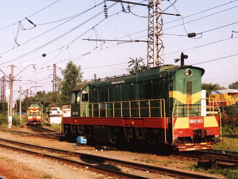ChME3t-6577 (ЧMЗ3T-6577) mit Übergabegüterzug auf Bahnhof Vladimir Pass (Владимир Пасс) am 31-08-2004. Bild und scan: Date Jan de Vries. Date Jan de Vries