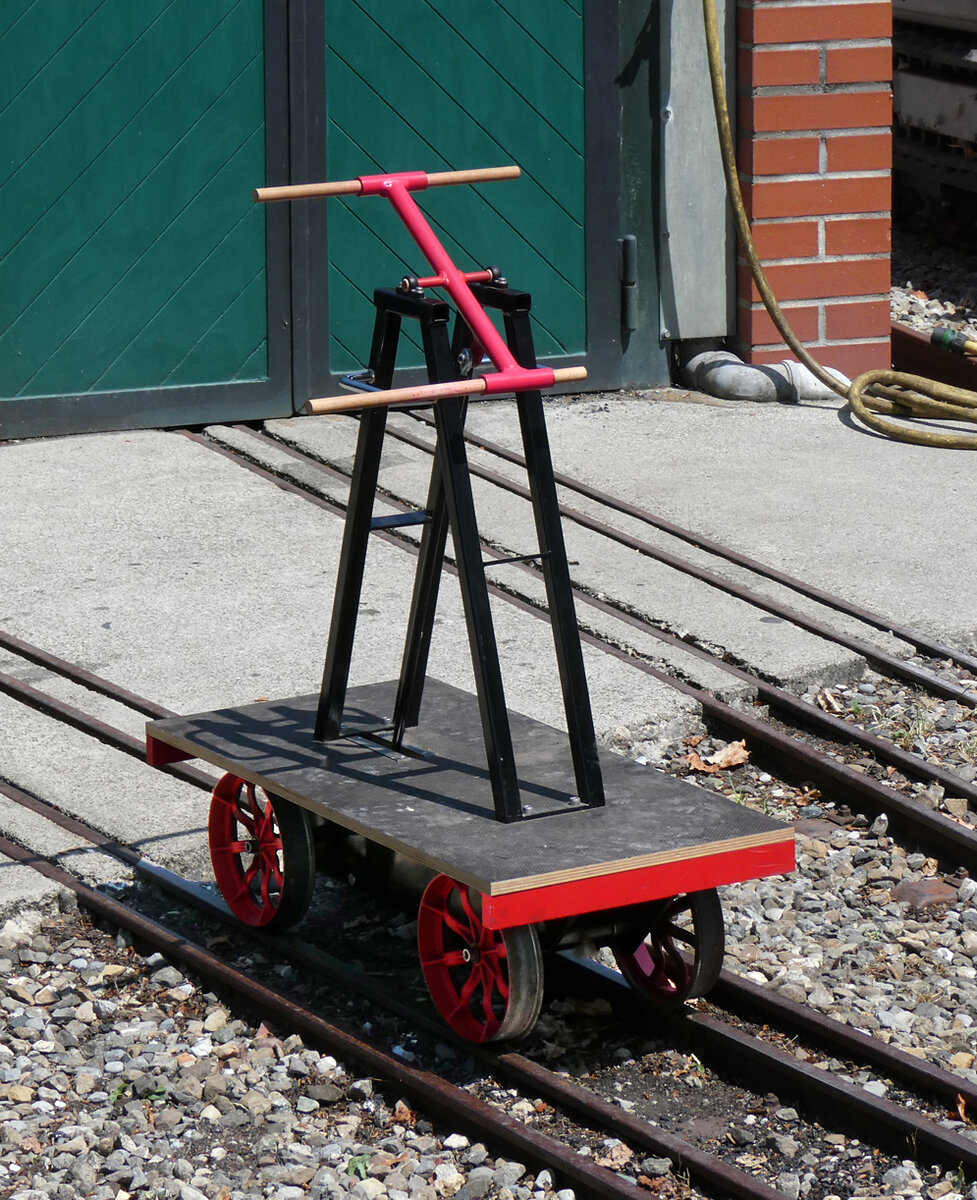 Diese Handdraisine ist funktionstüchtig! Ein seltenes Fortbewegungsmittel auf der 7 1/4 - Spur. Am Jubiläumsfest durfte man auch die Depotanlagen begehen. Stein am Rhein, 21.6.2025 Markus Gmür