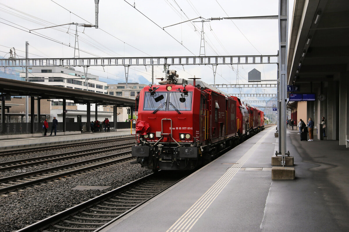 Ein SB Cargo International Vectron Doppel mit Lok 193528-7 an der Spitze durcheilt hier am 24.5.2025 um 8.59 Uhr mit einem Containerzug den Bahnhof Altdorf in Richtung Arth-Goldau. Gerd Hahn