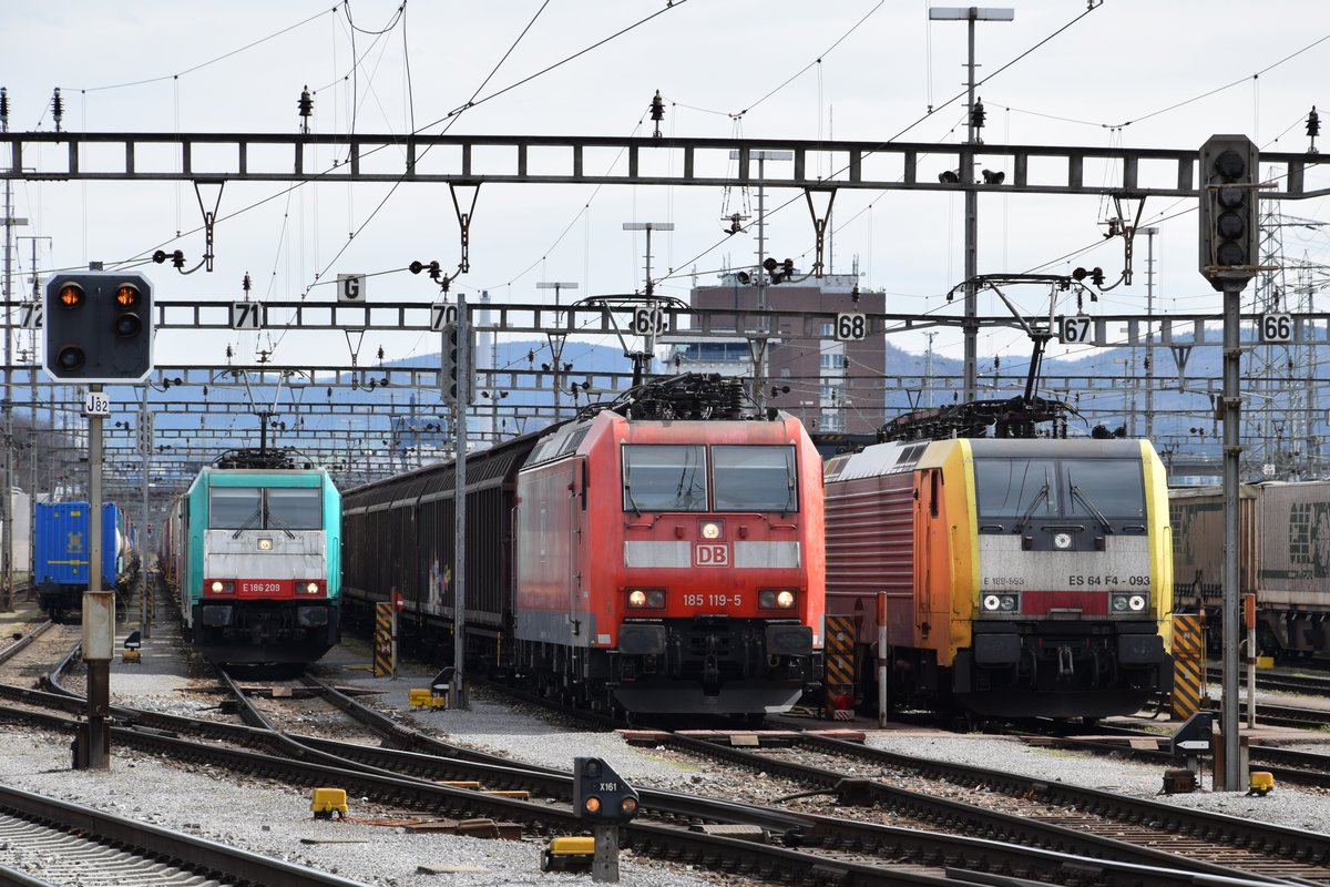 Basel Rangierbahnhof am 6. Oktober 2017. MRCE / SBB Cargo International 189 290 "Rastattless/AusgeRastatt" wartet in der G-Gruppe auf weitere Aufgaben. SBB Cargo International nutzt die Gelegenheit der Wiedereröffnung der Rheintalbahn bei Rastatt, um auf Missstände in der Organisation und Zusammenarbeit der europäischen Güterbahnen aufmerksam zu machen. Julian Ryf
