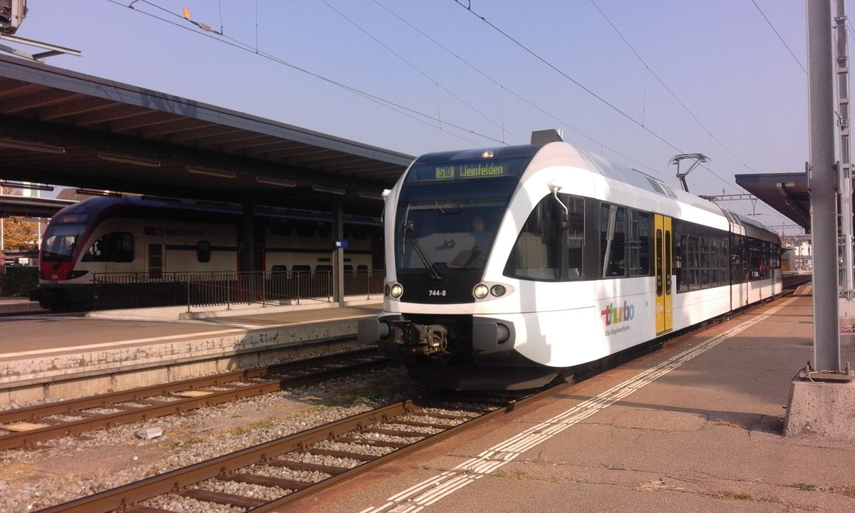 Das Schöne Wetter Ende Oktober trieb mich wieder einmal an den Bahnhof in Wil. Der Thurbo - GTW RABe 526 744 ist soeben aus Wattwil in Wil eingetroffen und wird nun seine Fahrt als S 10 nach Weinfelden fortsetzen.