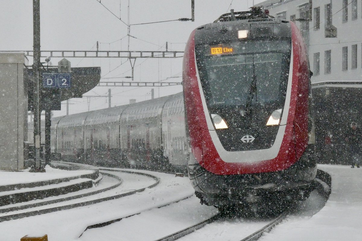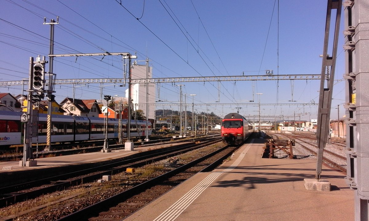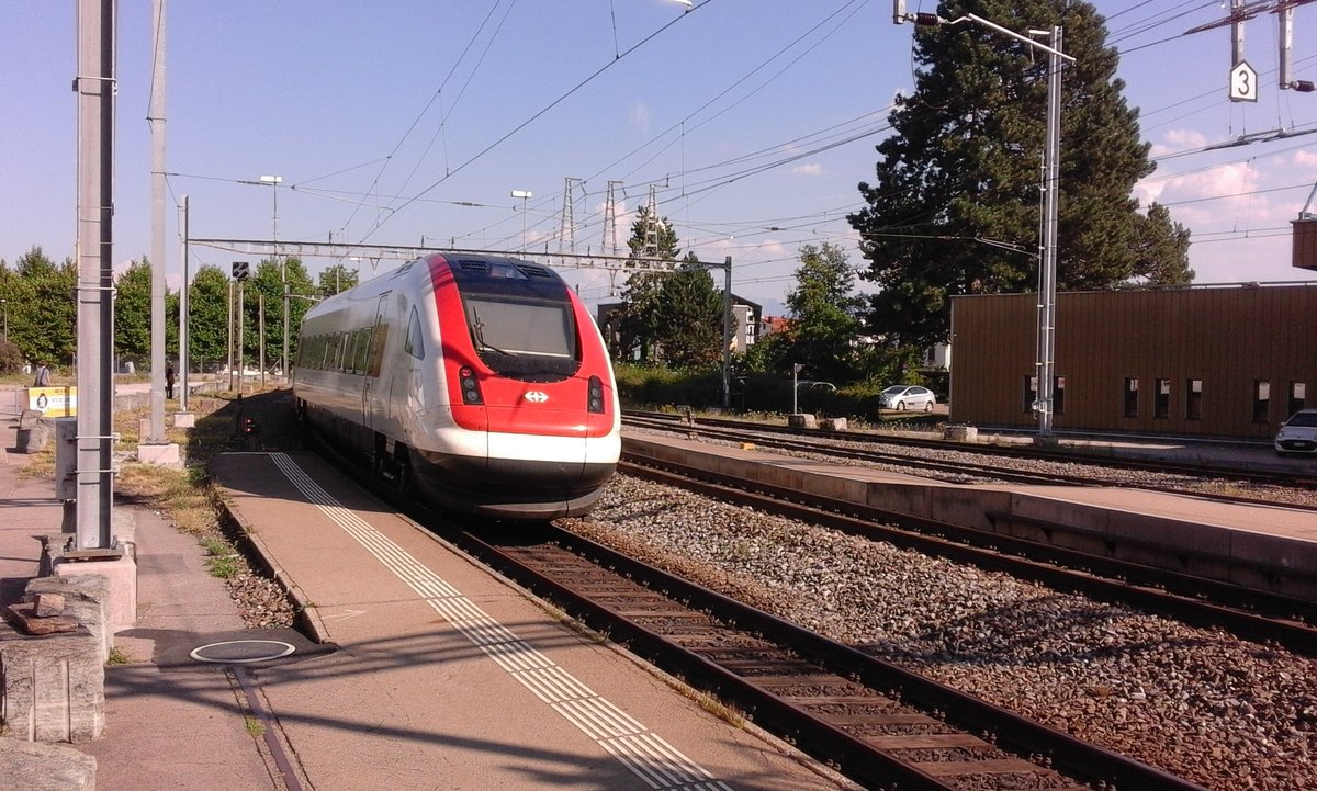 Die beiden ICN RABDe 500 031 (Louis Favre) und 500 026 (Alfred Escher) treffen rechtzeiteig als ICN 5 nach Lausanne in Wil ein.