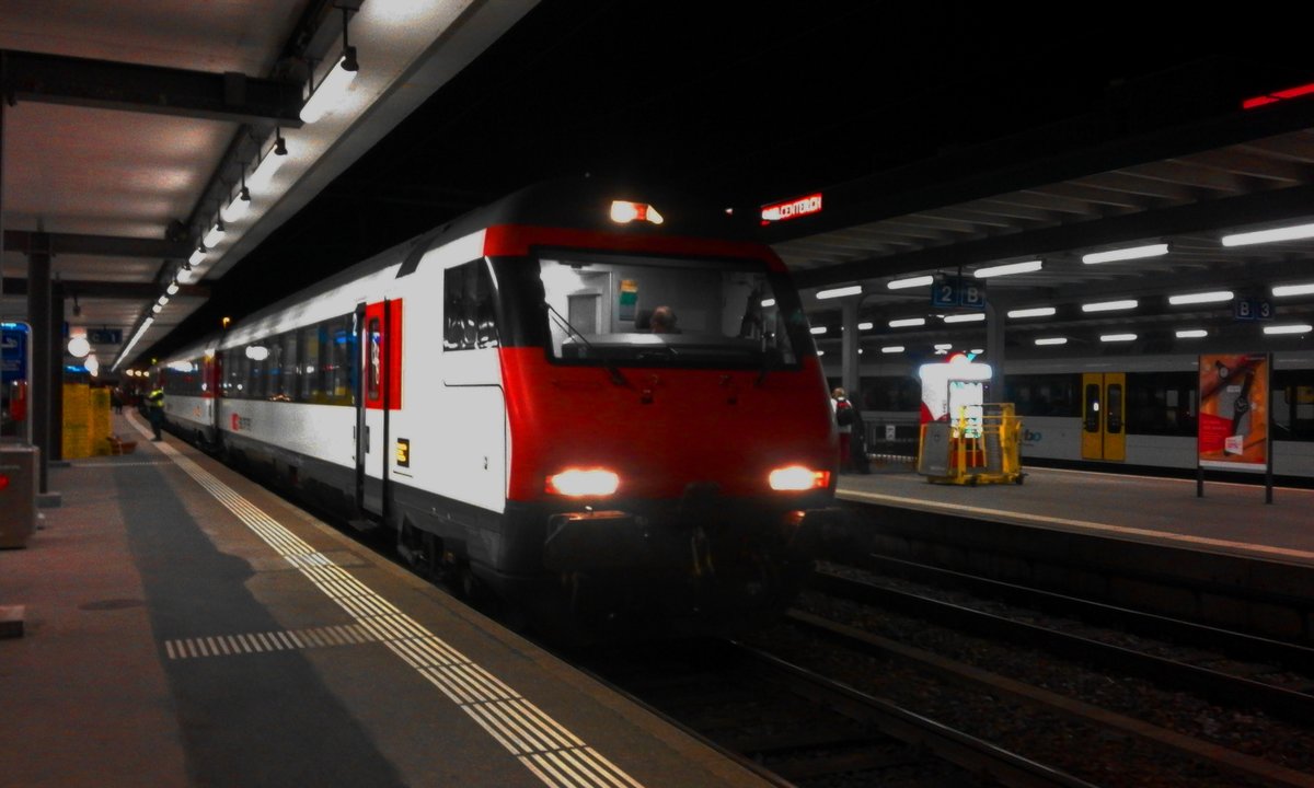 Licht- und Schattenspiel im Bahnhof Wil! Im Mittelpunkt steht der Regioexpress nach Chur, der an diesem Mittag vom RABe 511 034 des ZVV geleistet wurde.