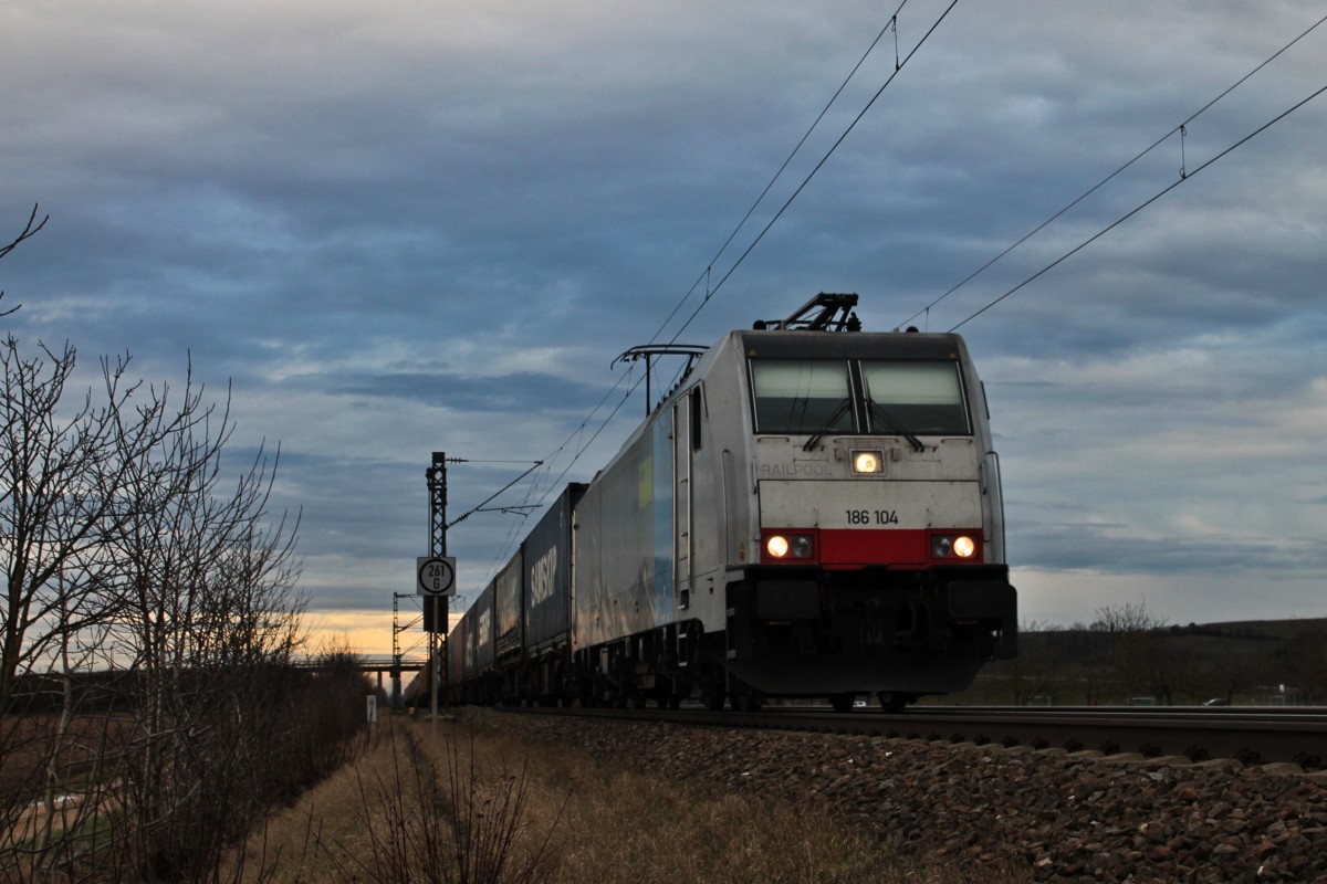 Vorbeifahrt am 08.03.2014 von der Railpool/BLS Cargo 186 101 mit einem Containerzug an dem Winzerort in Richtung Müllheim (Baden) und weiter in die Schweiz. Gruß an den Tf! Tobias Schmidt