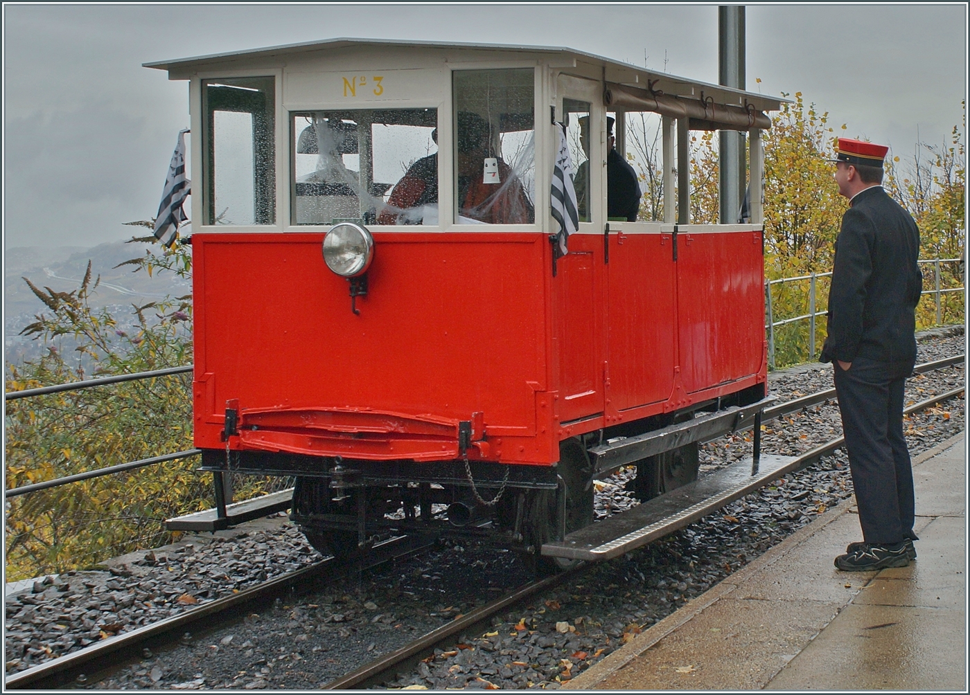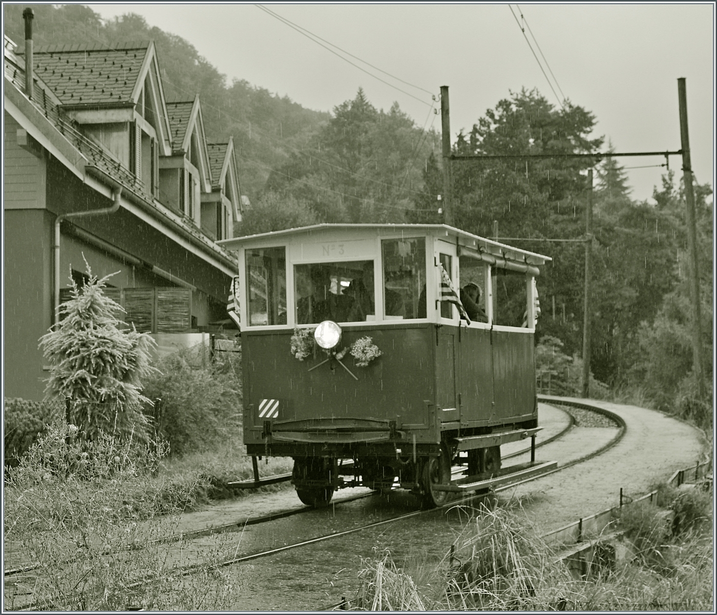 An diesem Tag war der 3,71 lange Dm 2/2 N° 3 «Le Biniou» auf Probefahrt. - Morgen, wird er kleine «Le Biniou» ganz gros in Szene gesetzt: Am Themenwochenende der Blonay-Chamby Bahn erfolgt nach der grossen Revision des Dm 2/2 N° 3 dessen Wiederinbetriebsetzung.