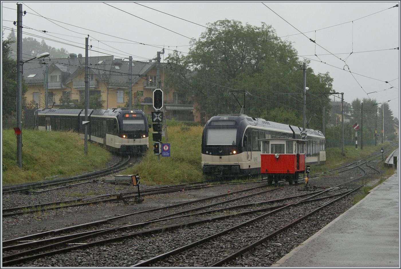 Des weitern im Bild: der abgestellte ABeh 2/6 7503 "Blonay - Chamby" und ein von Les Pleiades kommender, einfahrender weiterer CEV MVR ABeh 2/6.