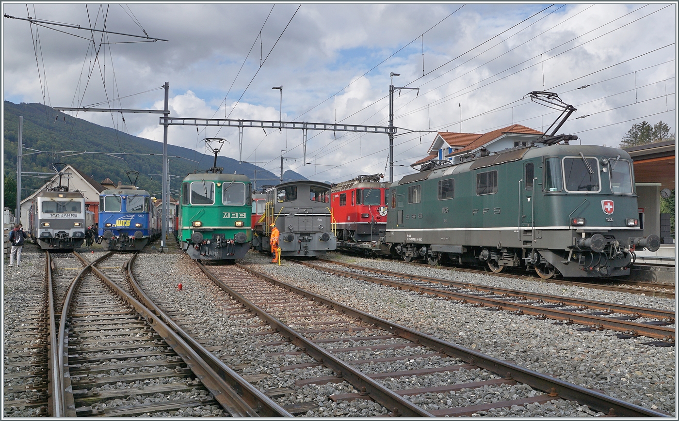 60 Jahre BoBo - dafür richtete die OeBB ein einmaliges Treffen von 25 Loks aus. Auf diesem Bild in Balsthal aufgenommen zeigen sich die SBB Re 4/4 II 11335 in Grün, im Hintergrund die Ge 4/4 II der RhB, ein OeBB Tm, die BAM /MBC Re 4/4 506 die WRS Re 4/4 II 502 und eine Re 456.