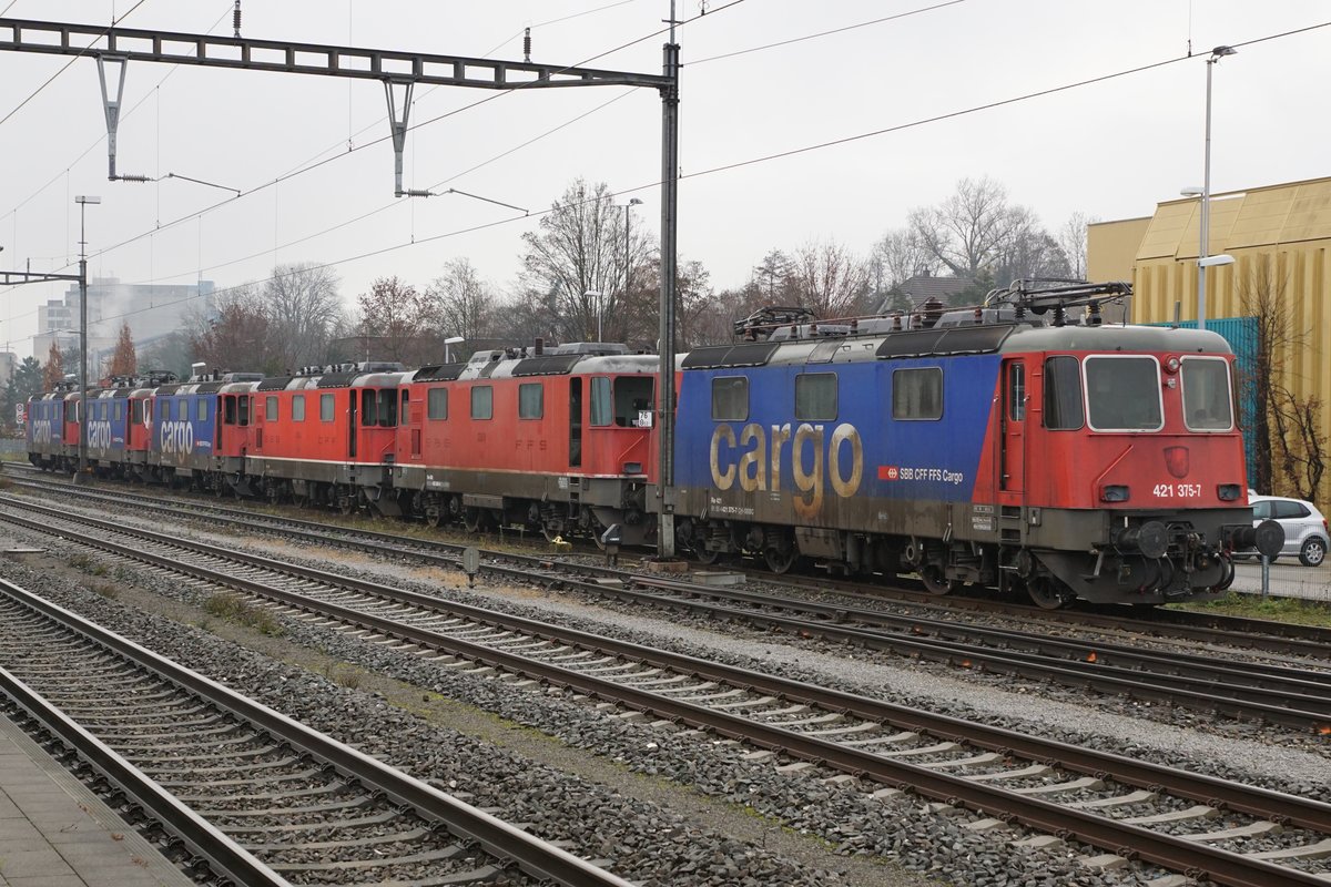 Für die Loks 421 375-7, 430 369-9, 430 363-2, 421 391-4, 421 376-5 und 421 386-4, hat bald die letzte Stunde geschlagen. Am 05.12.2020 stehen die Loks auf einem Nebengleis beim Bahnhof Kaiseraugst. Markus Wagner