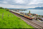 Auch Re 421 von SBB Cargo waren einge Zeit Gäste auf der Nord-Süd-Strecke, wie hier RE 421 378 mit einer Schwesterlok am 9.4.2016 bei Kerzell Markus Engel