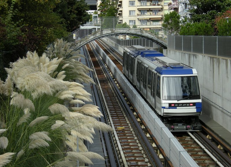 Martigny. Der kleine Baum mit den herrlich leuchtenden gelben Blättern dient mir in anderen Jahreszeiten aus einem andern Blickwinkel als Richtpunt für Bahnbilder mit dem Château de Chillon im Hintergrund.