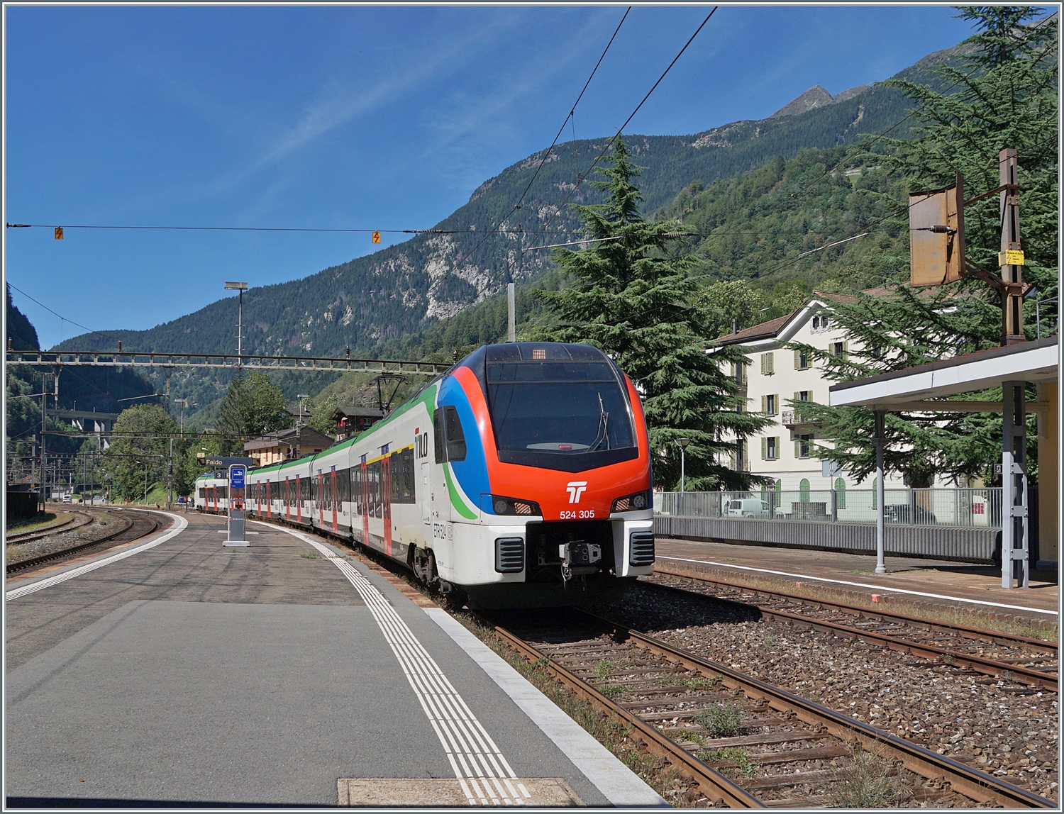 Der TILO RABe 524 305 als Leermaterialzug bei der Durchfahrt in Faido in Richtung Süden. Seitdem die SOB die RE Locarno - Basel/Zürich übernommen hat, sind die TILO RABe in der Leventina nur noch in den Randstunden im Einsatz; somit hatte ich Glück diesen TILO-Zug vor die Kamera zu bekommen.