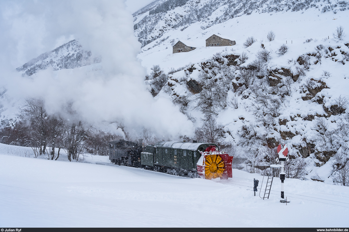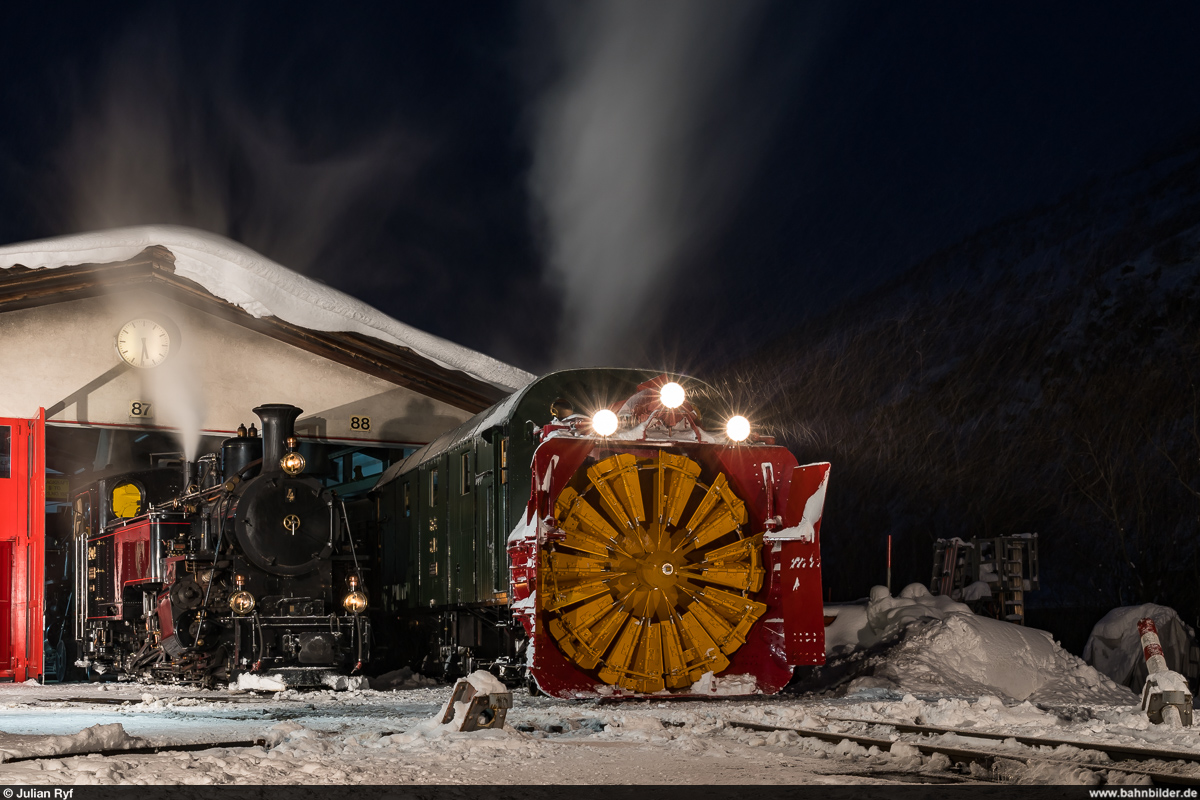 Fotofahrt mit der durch Martin Horath und seinem Team wunderbar aufgearbeiteten ex-RhB Xrotd R12 und der DFB HG 3/4 4 / Realp, 11. Dezember 2021 Julian Ryf