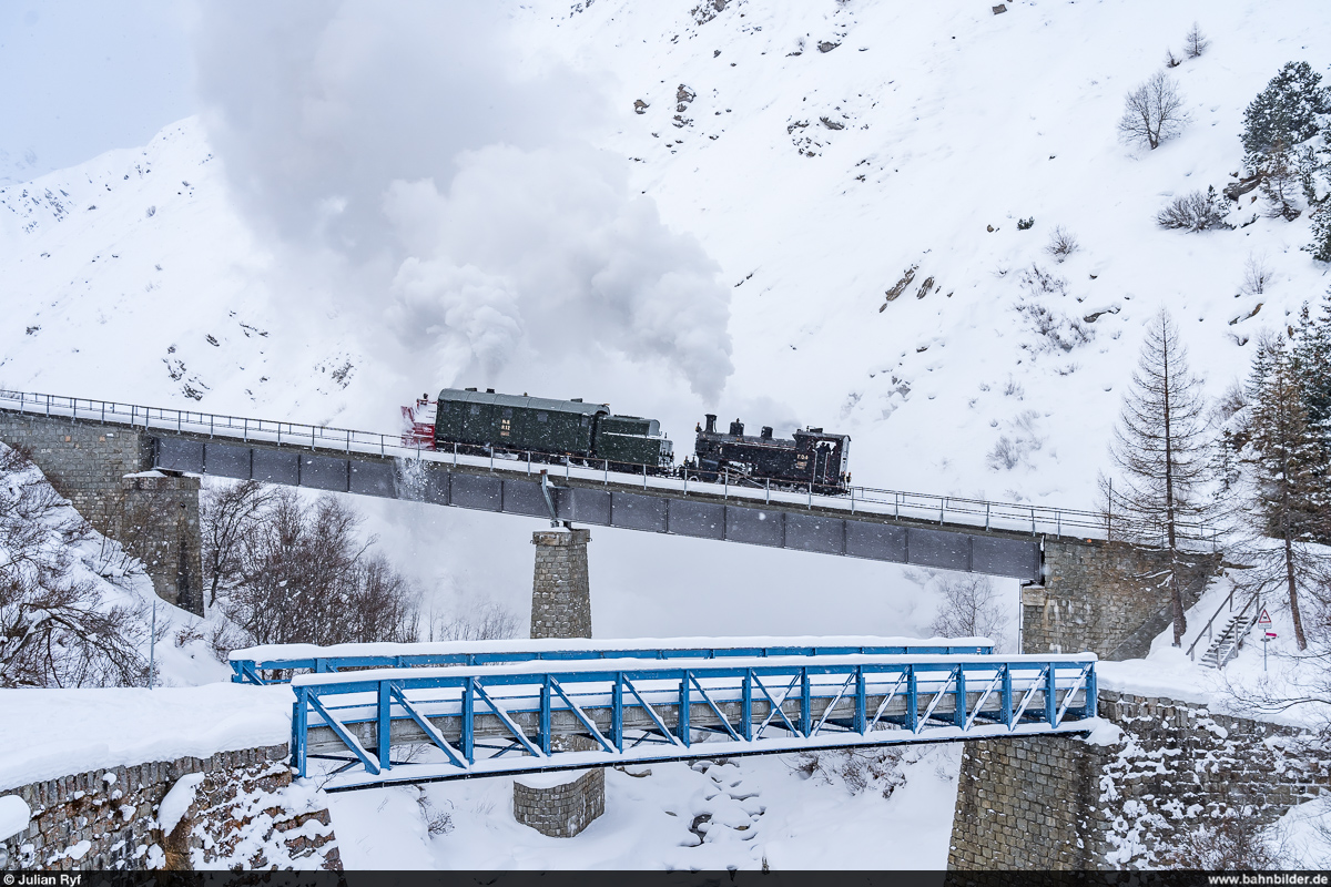 Fotofahrt mit der durch Martin Horath und seinem Team wunderbar aufgearbeiteten ex-RhB Xrotd R12 und der DFB HG 3/4 4 / Realp Wilerbrücke, 11. Dezember 2021 Julian Ryf