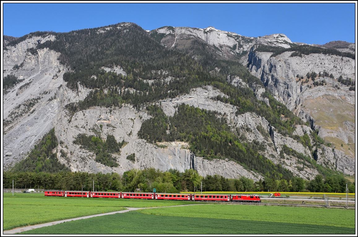 RE1041 nach Davos Platz mit Ge 4/4 II 626 "Malans" zwischen Landquart und Malans. Im Hintergrund der Gonzen 1830m, die Gauschla 2310m und der Regitzer Spitz 1135m. (04.05.2020) Herbert Graf