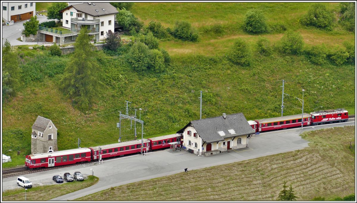 R1352 nach Scuol-Tarasp mit Ge 4/4 II 618  Bergün/Bravuogn  beobachtet von der Fortezza Rohan in Susch. (19.07.2020)