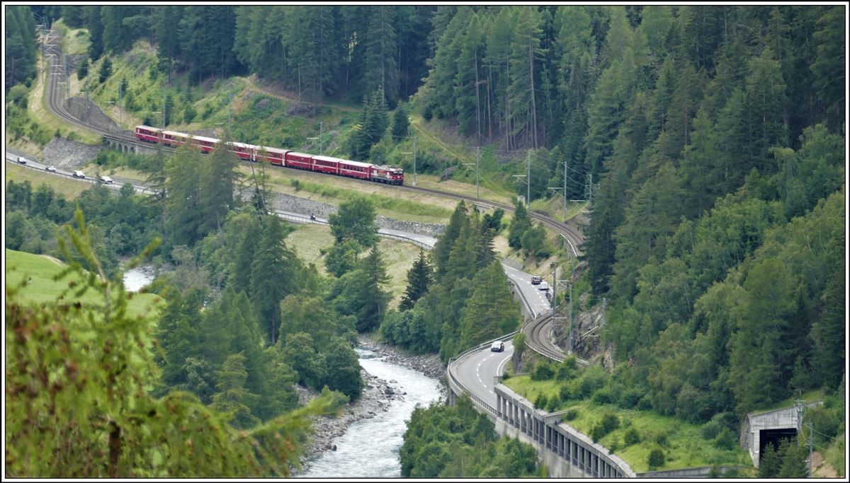 R1948 nach Scuol-Tarasp mit Ge 4/4 II 630  Trun  zwischen Zernez und Susch. (19.07.2020)