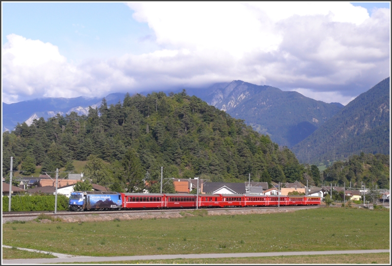 Es hat ein wenig Modellbahnatmosphäre, aber diese Ge 4/4 III (Lok 652: Werbung für den Hockey Club Davos) zog am 17. August 2009 tatsächlich diesen RegioExpress nach Chur am Fotografen vorbei. Marvin