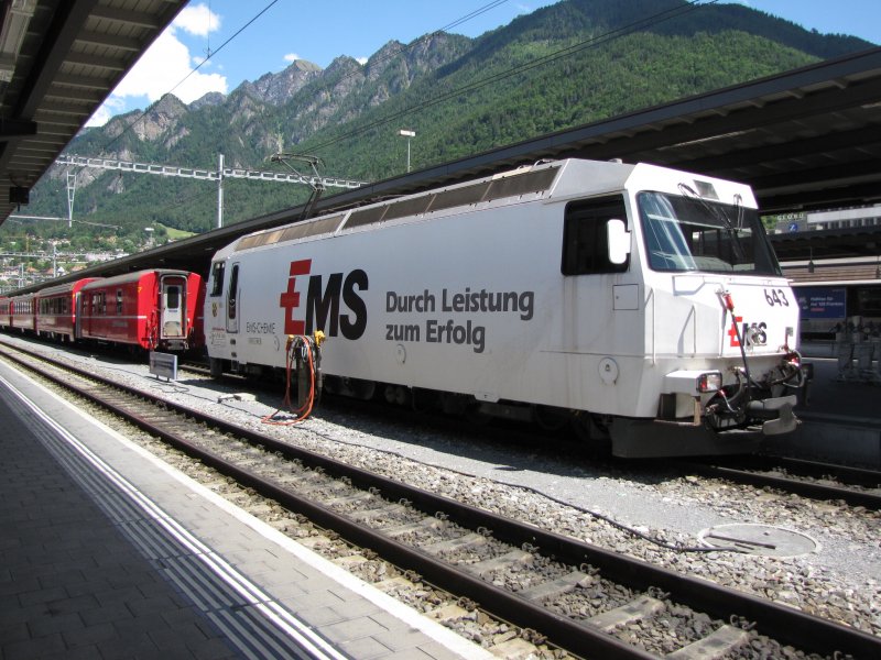 Ge 4/4 646 wird im Bahnhof Chur an den Glacier Express D 905 gekuppelt, um die Weiterfahrt nach Zermatt antreten zu können. (7.7.09) Stephan Kainberger